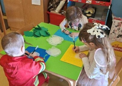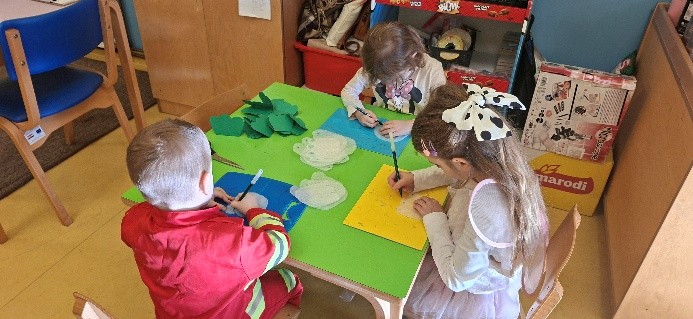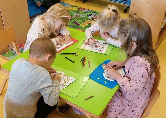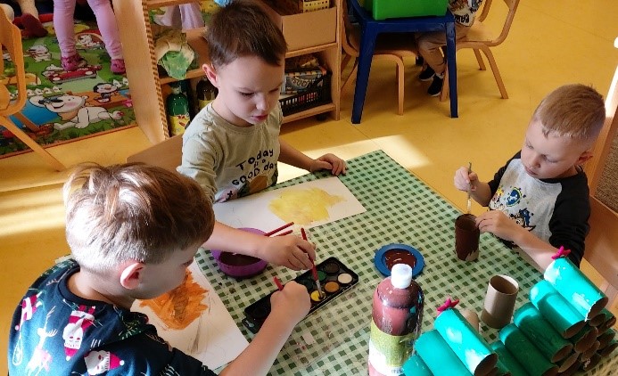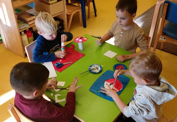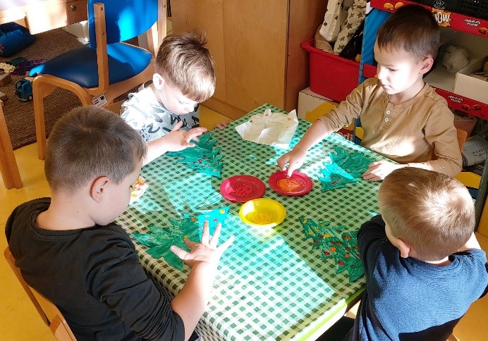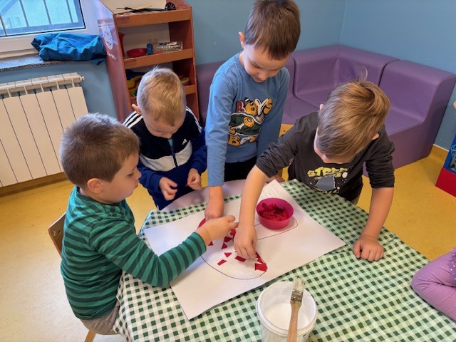 Izradili smo razne jesenske ukrase (3D stabla jabuke, lišće, ježiće) kojima smo ukrasili unutrašnjost ustanove. Također oslikali smo likove naziva naših skupina te njima ukrasili ogradu ispred ulaza u naš vrtić.