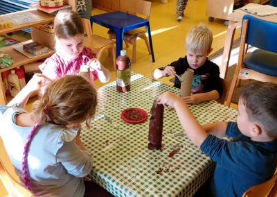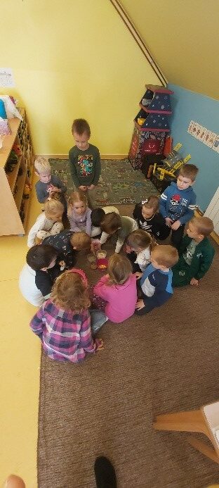 Mjesec listopad započeli smo s proslavom 5. rođendana našeg vrtića. Kroz cijeli tjedan provodili smo aktivnosti vezane za rođendan kao što su: oslikavanje rođendanskih kruna, crtanje rođendanske torte, izrađivanje ukrasa, razgovor s djecom što najviše vole u vrtiću. Vrhunac proslave rođendana bio je izrada prave torte, djeca su bila jako uzbuđena prilikom izrade, te su svi jedva čekali isprobati kako je to miksati kreme. Svojom tortom počastili smo i naše roditelje. Nadamo se da vam je bila jako ukusna.