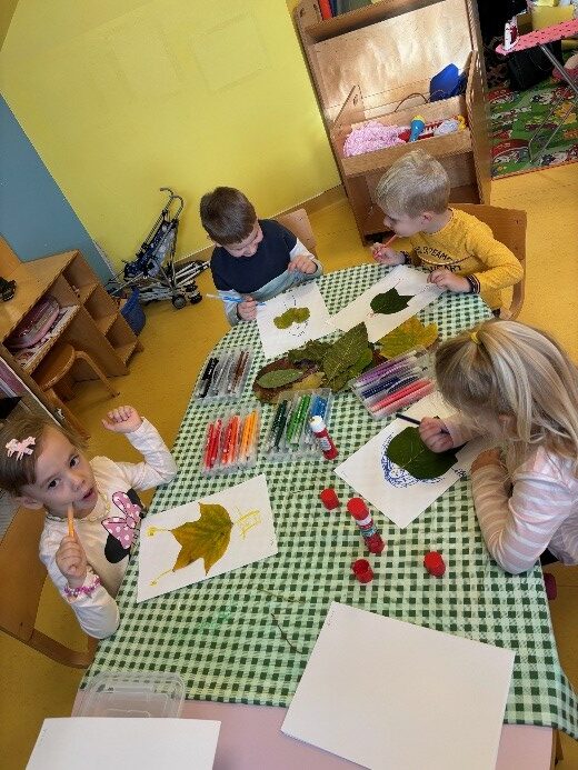 Iako je jesen već bila pri kraju, iskoristili smo svaki trenutak lijepog vremena za boravak na svježem zraku. Otišli smo u obližnju šumu gdje smo s velikim veseljem i znatiželjom sakupljali lišće koje nam je poslužilo kao inspiracija i materijal za brojne aktivnosti.