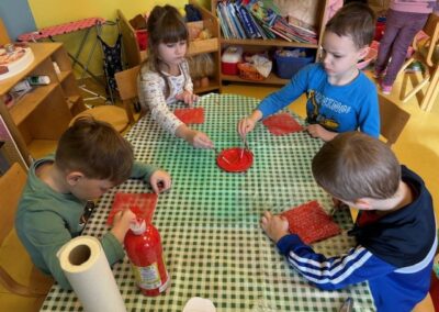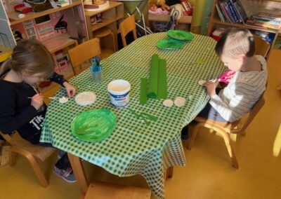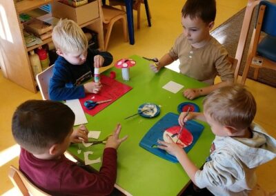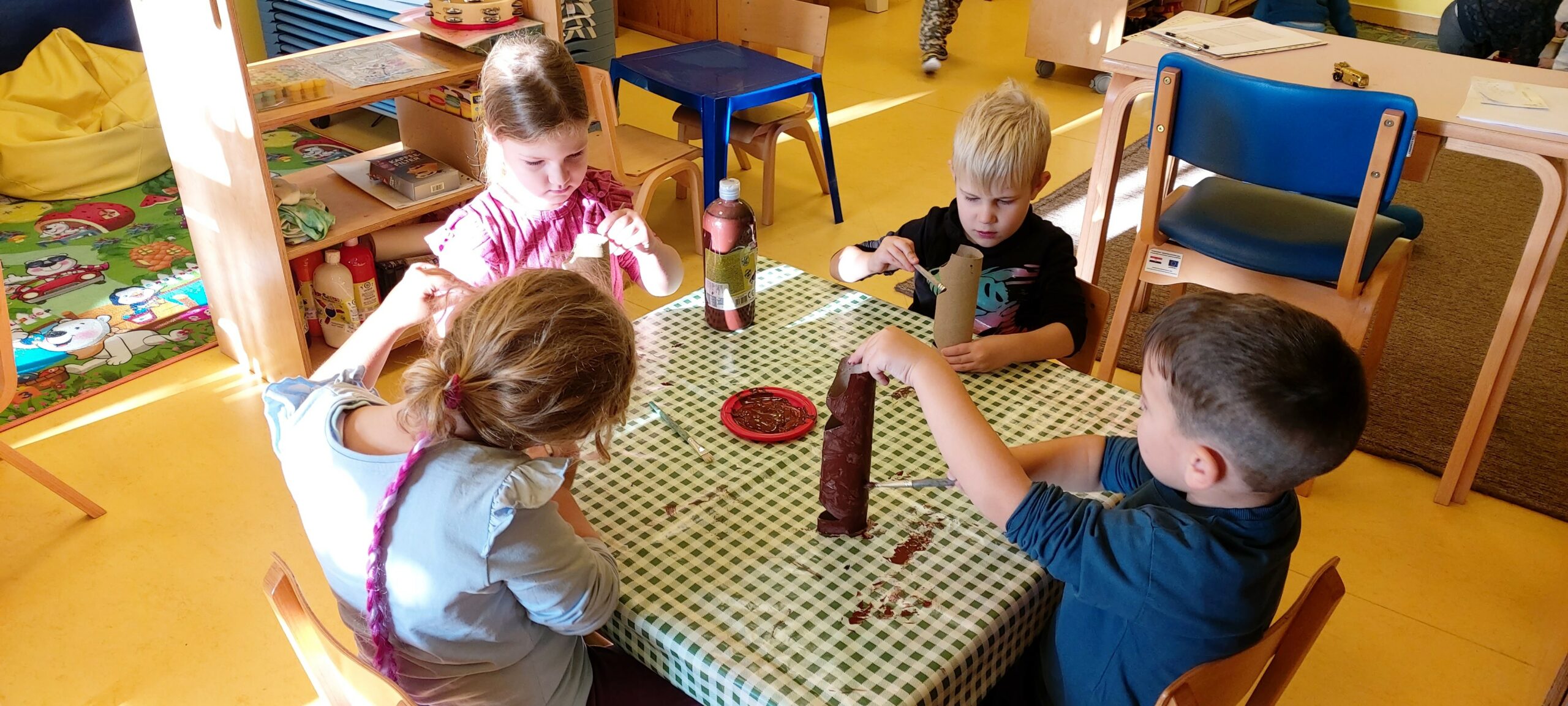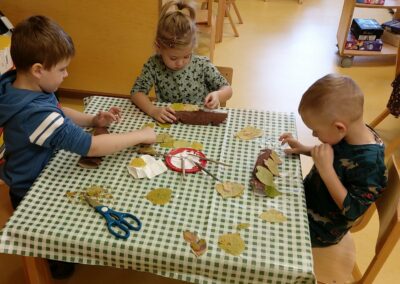 Nastavili smo s izradom jesenskih radova koje smo izložili u prostorijama vrtića. Koristeći kartonske tuljke i lišće stvorili smo prava mala remek djela. Izrađivali smo gljive i ježiće. Kroz ove aktivnosti djeca su vježbala finu motoriku, ali i naučila prepoznavati razne jesenske plodove i bića.