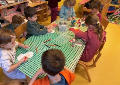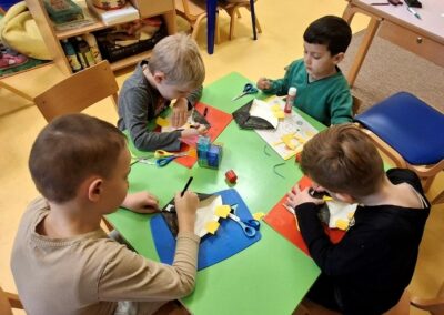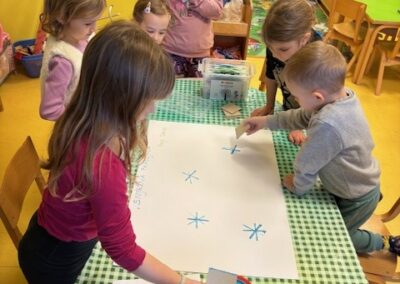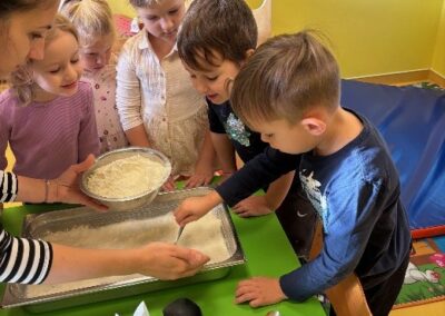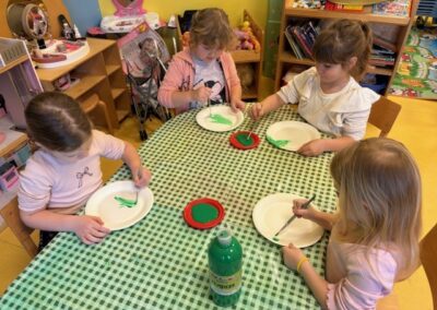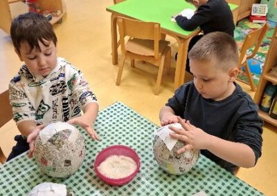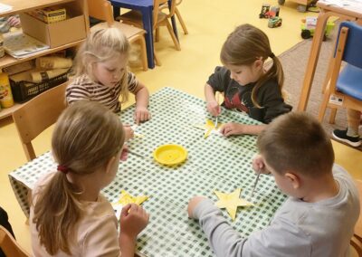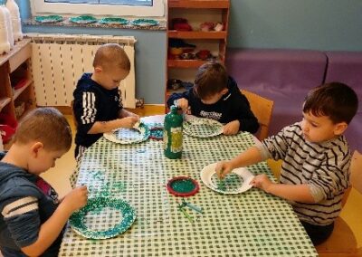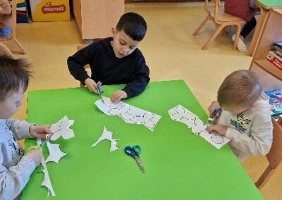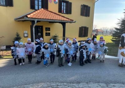 S velikim uzbuđenjem smo se pripremali za Advent i dolazak dragog nam Svetog Nikole. Kako bismo ga što ljepše dočekali, naučili smo nekoliko veselih recitacija i pjesmica te izradili čizmice. Krenuli smo s izradom zvjezdica kojima smo ukrasili unutrašnjost našeg vrtića, zatim zvončića za bor, te smo vježbali strpljenje izrađujući adventske vjenčiće od papirnatih tanjura. Posebnu pozornost posvetili smo izradi kuglica i pahuljica kojima smo ukrasili bor ispred zgrade Općine Sveti Juraj na Bregu.