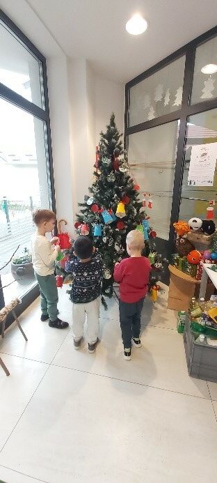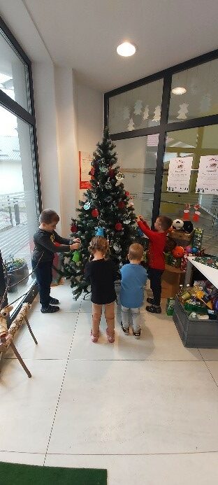 Poseban trenutak bila je naša božićna radionica i druženje s roditeljima. Djeca su izvela kratki program koji se je sastojao od naučenih recitacija i pjesmica. Zajedno s roditeljima izradili smo ukrase za bor koji smo okitili ispred naše sobe.