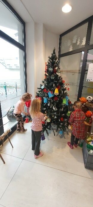 Na ulasku u vrtić okitili smo bor izrađenim zvončićima od papirnatih čaša. Sve skupine su se jako potrudile u izradi ukrasa i morate priznati da je zaista predivan.