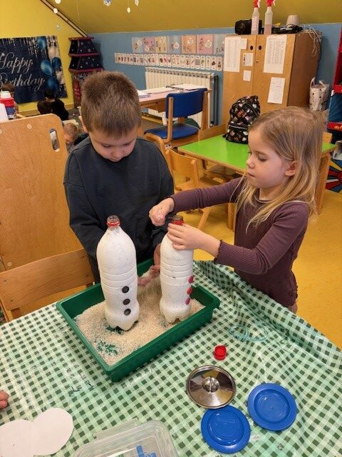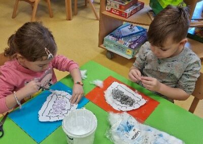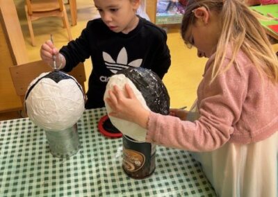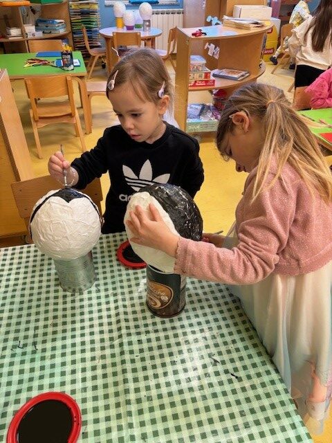 Prava zimska idila zavladala je našim vrtićem kroz razne kreativne aktivnosti. Za panoe izradili smo snjegoviće koristeći različite materijale i tehnike. Iskoristili smo plastične flaše i napravili snjegoviće kojima smo ukrasili hodnik vrtića. Uz snjegoviće, prostorije vrtića i panoe krase i naši pingvini koje smo izradili od papirnatih tanjura te balona. Naročito nam je zabavna i poučna bila tehnika kaširanja balona, pomoću kojih smo oblikovali tijela malih polarnih stanovnika.