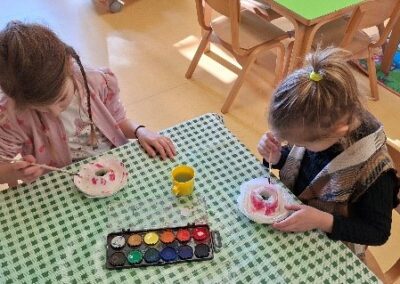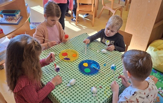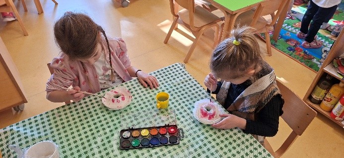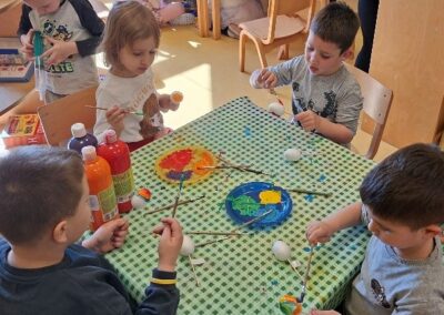 U susret Uskrsu izrađivali smo čestitke i košarice u obliku zečića te smo oslikavali stiroporna jaja prema vlastitim željama. Sve aktivnosti bile su ispunjene kreativnošću i veseljem.