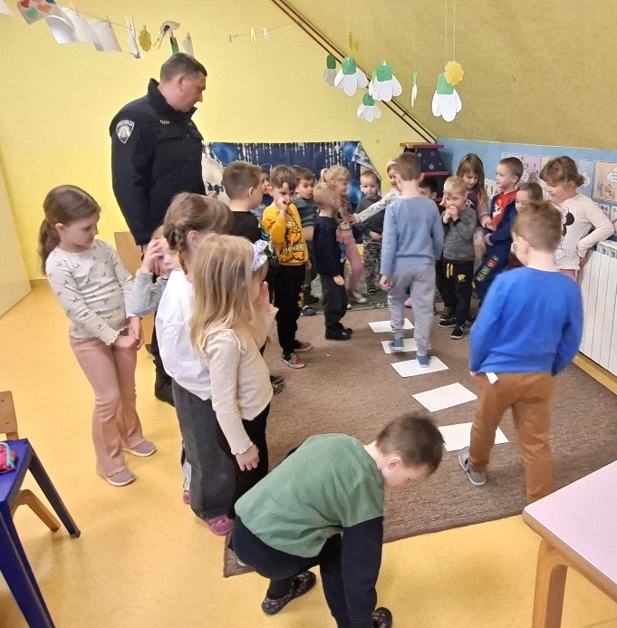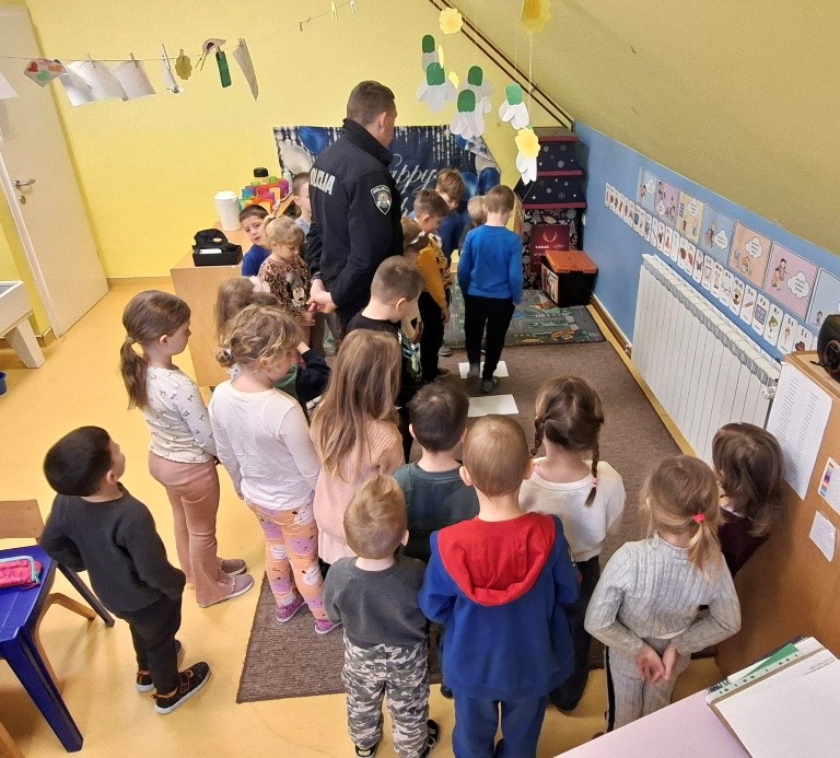 Nastavili smo s projektom „Zanimanja“, u sklopu kojeg nam je u posjet došao gospodin Vidović i predstavio svoje zanimanje policajca. Naučili smo važna pravila ponašanja u prometu, kako sigurno prelaziti zebru, a imali smo priliku isprobati i policijske prsluke i palice. Zahvaljujemo gospodinu Vidoviću na uloženom trudu i lijepim poklonima.