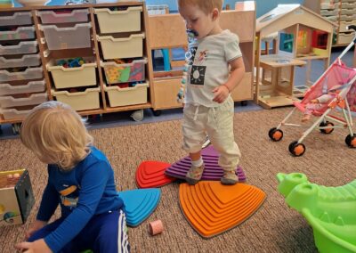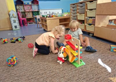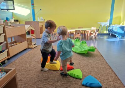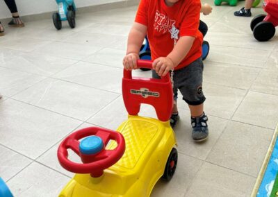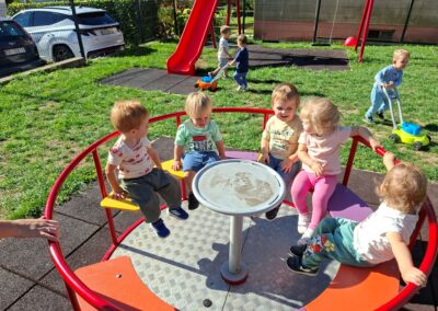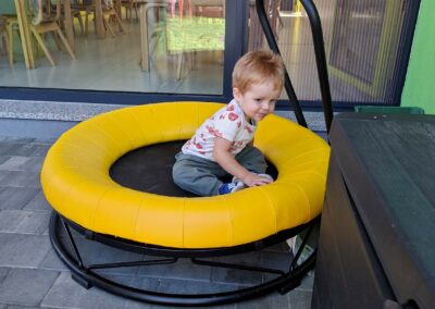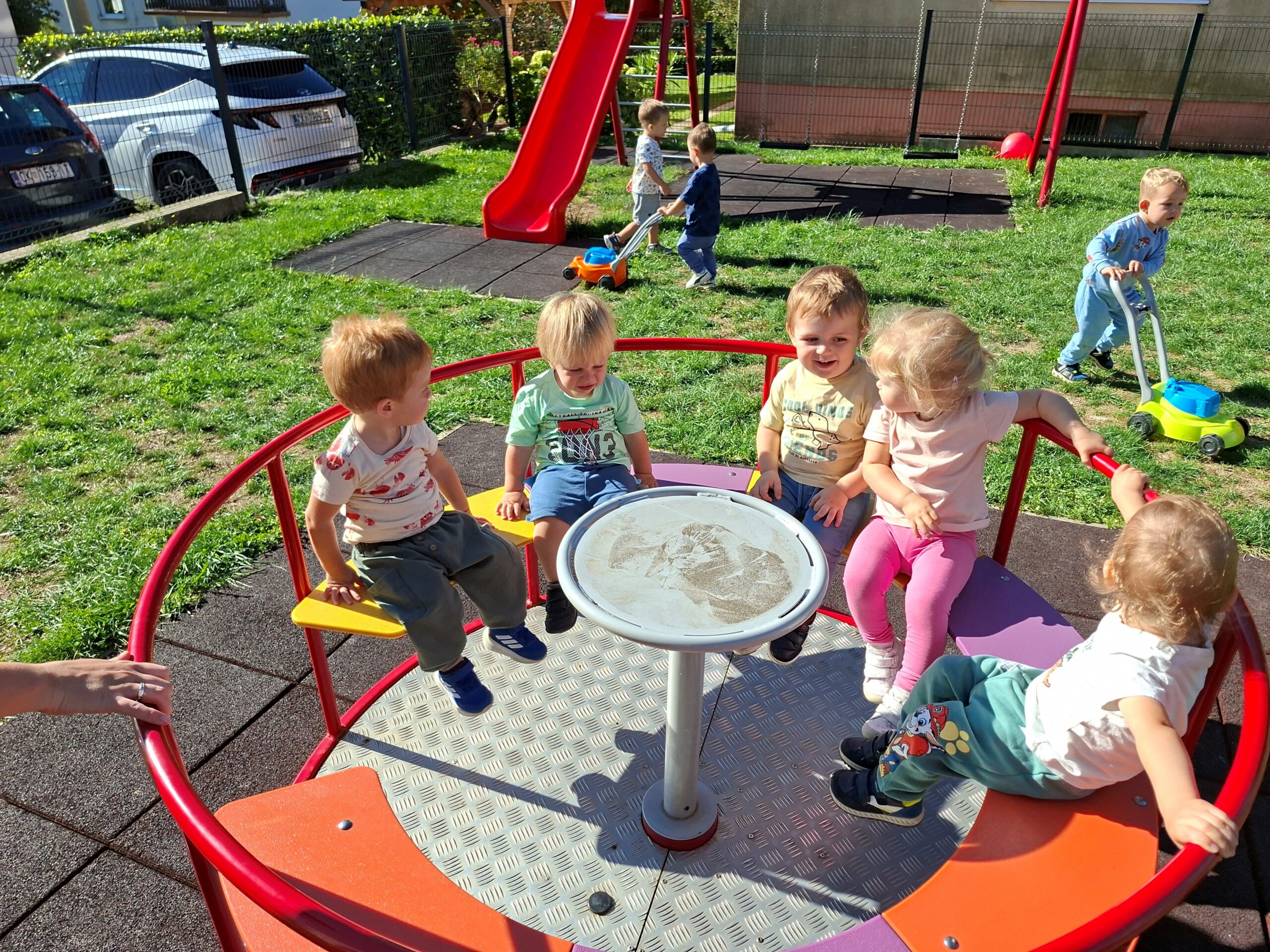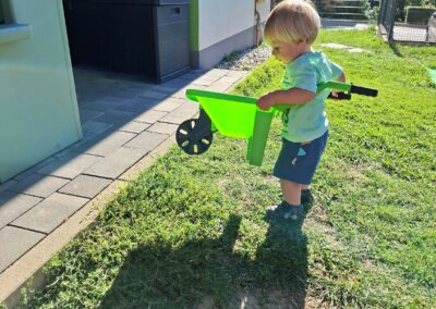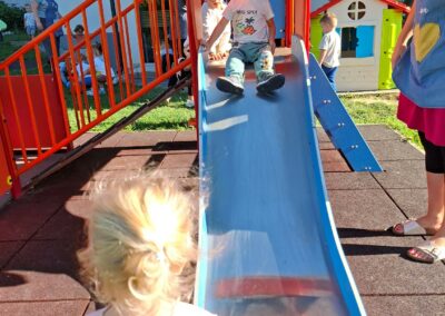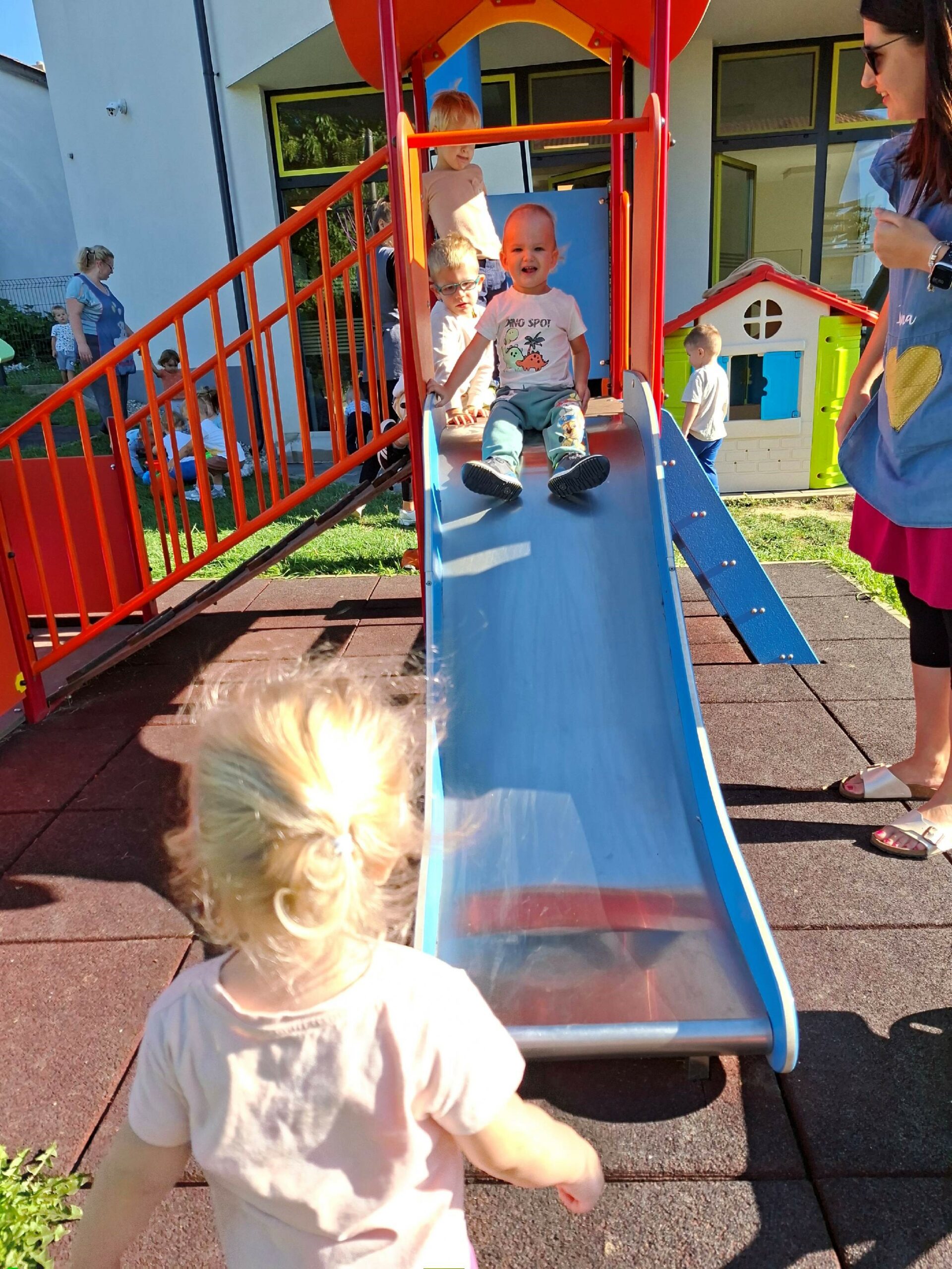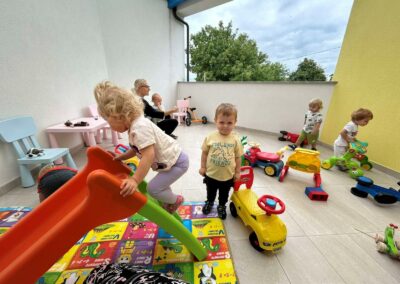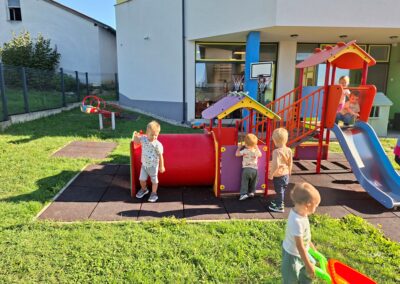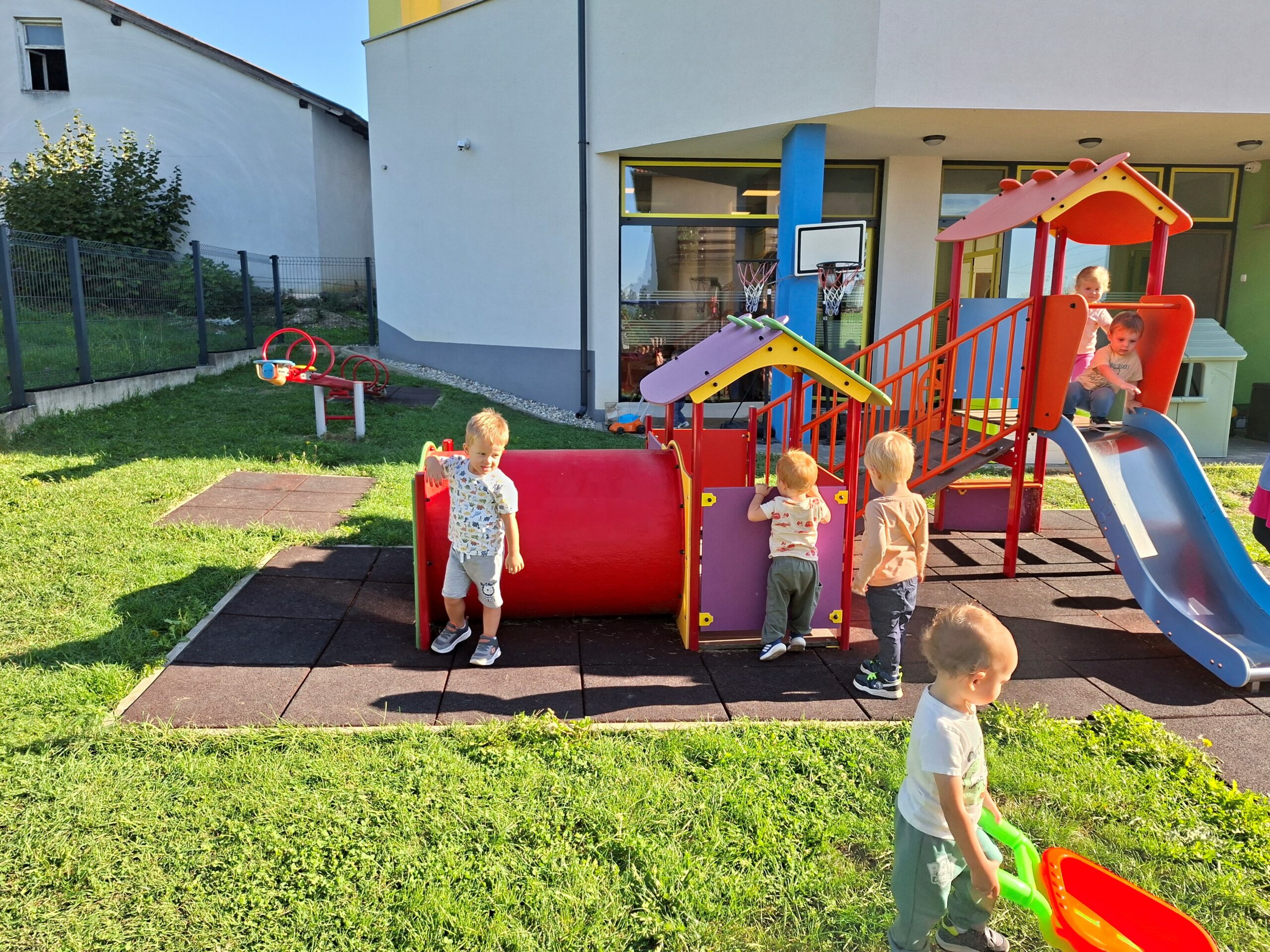 Veliko veselje donose nam igre na terasi i vrtićkom igralištu. Spuštamo se niz tobogan, klackamo, hodamo po „poligonskim“ kamenčićima i gredi, učimo održavati ravnotežu i otkrivamo koliko je lijepo kretati se na otvorenom. Svaki pokušaj održavanja ravnoteže ili samostalnog spuštanja niz tobogan donosi djeci veliki osjećaj ponosa, a nama veselje kada ih gledamo kako napreduju. Veliku radost donose i plesne igre te vježbanje uz glazbu. Djeca se rado uključuju, plješću, njišu se, skaču i pokušavaju ponoviti pokrete. Kroz takve aktivnosti razvijamo motoriku, koordinaciju i osjećaj za ritam, ali i stvaramo veselu, opuštenu atmosferu u kojoj se djeca osjećaju sigurno i slobodno izraziti.