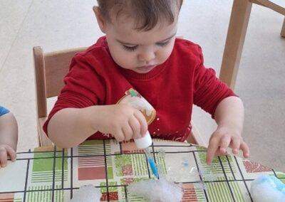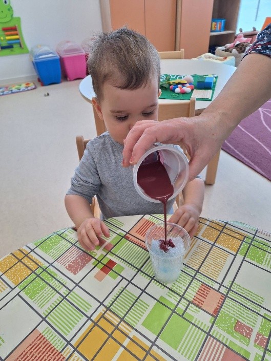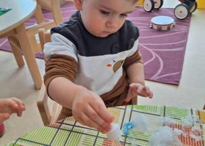 U projektu „Senzomotorika u vrtiću“ najzanimljivije su djeci bile aktivnosti sa snijegom. U ovim istraživačko-spoznajnim aktivnostima djeca su doživjela osjet hladnoće snijega, izrađivala su snježne grude, obojila su snijeg uz pomoć kapaljke te različitih tekućih boja. Saznali smo što se desi sa snijegom kad ostane u toploj sobi. Kroz igru „Muffini“ djeca su razvijala finu motoriku te su taktilno istraživala.