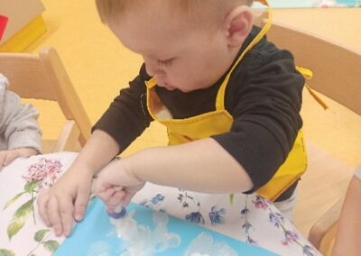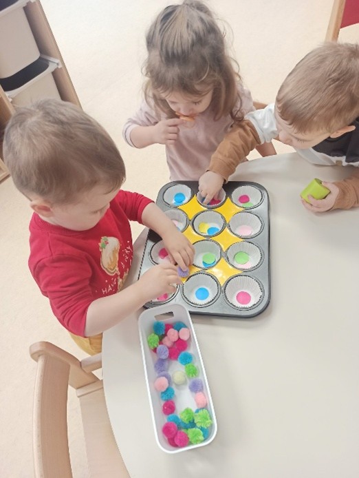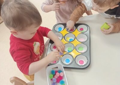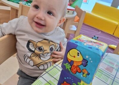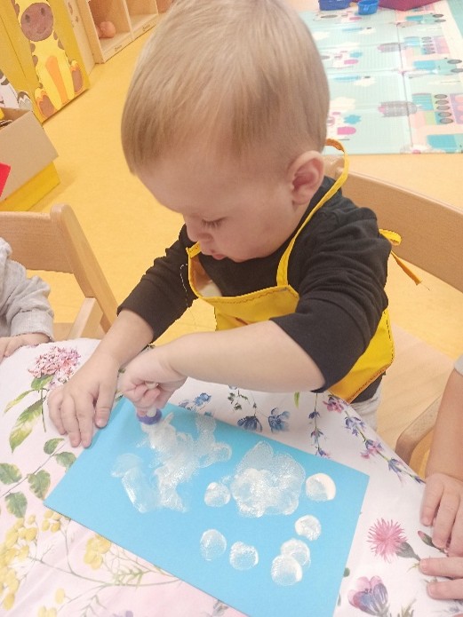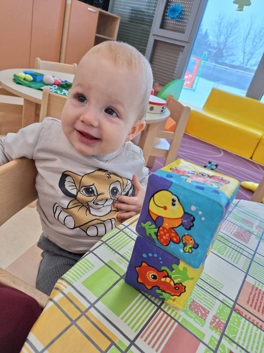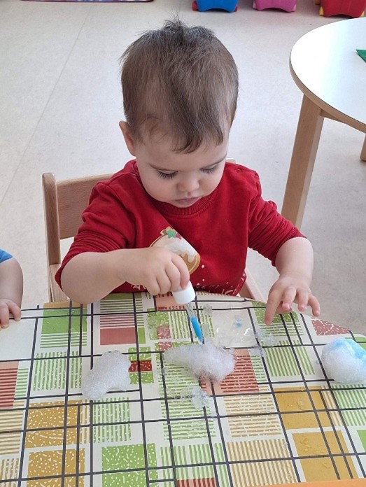 U sklopu našeg projekta „Senzomotorika u jaslicama“ razvijali smo finu motoriku kroz modeliranje slanim tijestom i plastelinom koje su djeca oblikovala, gnječila i trgala. Upoznali smo se s bubnjem, glazbenim instrumentom koji su djeca dodirivala, stvarala te slušala zvuk koji daje. Djeca su kroz igru taktilnom pločom razvijala svoju vizualnu i taktilnu percepciju što im je bilo vrlo zanimljivo te im je na taj način bilo omogućeno istraživanje i učenje putem osjeta.