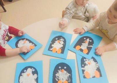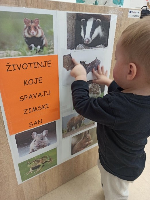 Kroz edukativni plakat upoznali smo životinje koje spavaju zimski san, a kroz prigodne slikovnice naučili kako izgledaju te gdje žive životinje polarnih krajeva. Djeci su se jako dopali pingvini te su ih izradili likovnom tehnikom tempera te kolaž papirom.