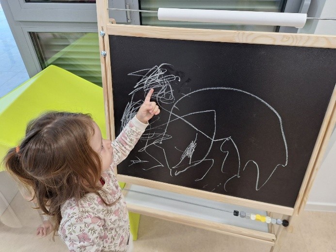 Tema dječjeg tjedna ove godine bila je „Empatija“ pa smo tjedan proveli razvijajući kod djece osjećaj pripadnosti, zajedništva, ljubavi i prijateljstva. Čitali smo prigodne slikovnice, fokusirali se na aktivnosti koje su djeca sama odabirala, družili smo se s djecom iz drugih skupina i razvijali razne motoričke sposobnosti (penjanje, kotrljanje, puzanje, trčanje). Krajem tjedna smo izradili zajednički plakat otiscima dlanova koje smo iskoristili kao bodlje na ježu.