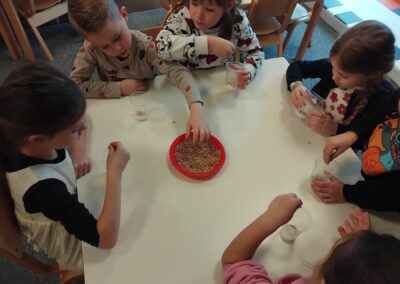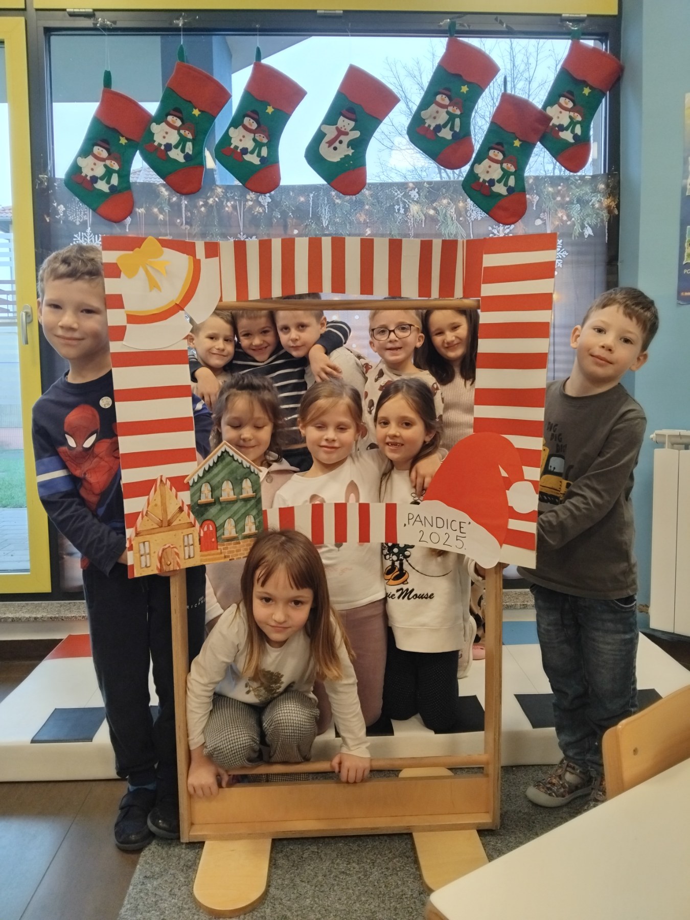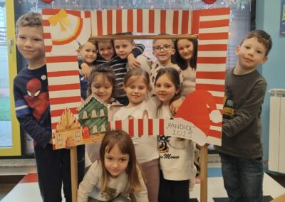 Predbožićno vrijeme je posebno radosno jer duh Božića širi se pjesmom, plesom i u srca donosi neopisivu toplinu. Pandice su se neumorno pripremale za 12. božićni sajam Općine sv. Juraj na Bregu uvježbavajući svoje dvije točke, pjesmicu Snješkova pjesma i igrokaz Let pahuljica. Uz to učili smo i recitacije o zimi, plesali i pjevali na božićne pjesme, slušali ih i dok smo marljivo izrađivali brojne božićne ukrase kojima smo ukrasili jelku ispred općine, jelku u hodniku vrtića, ogradu vrtića, blagovaonicu i našu sobu dnevnog boravka. Jedna od zanimljivih aktivnosti bila je sijanje pšenice gdje smo odmah i učili kako biljka treba vodu, svjetlost i toplinu za rast. Zato smo mi naše posijane pšenice smjestili kraj prozora i blizu radijatora kako bi mogle nesmetano rasti.