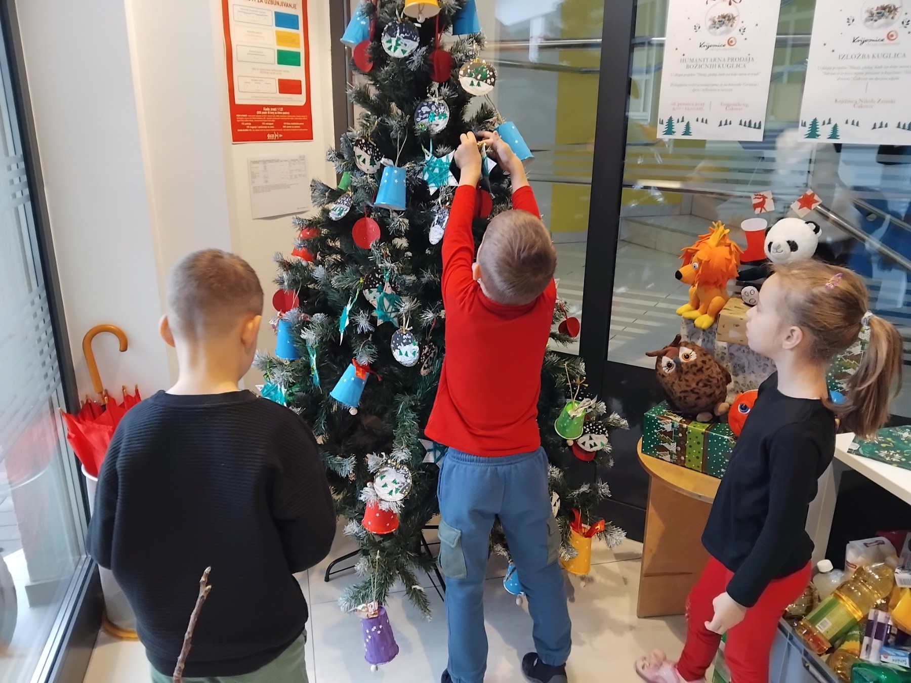 Raznim likovnim tehnikama izradili smo božićne ukrase – bombone, kojima smo krajem mjeseca ukrasili bor ispred zgrade Općine.