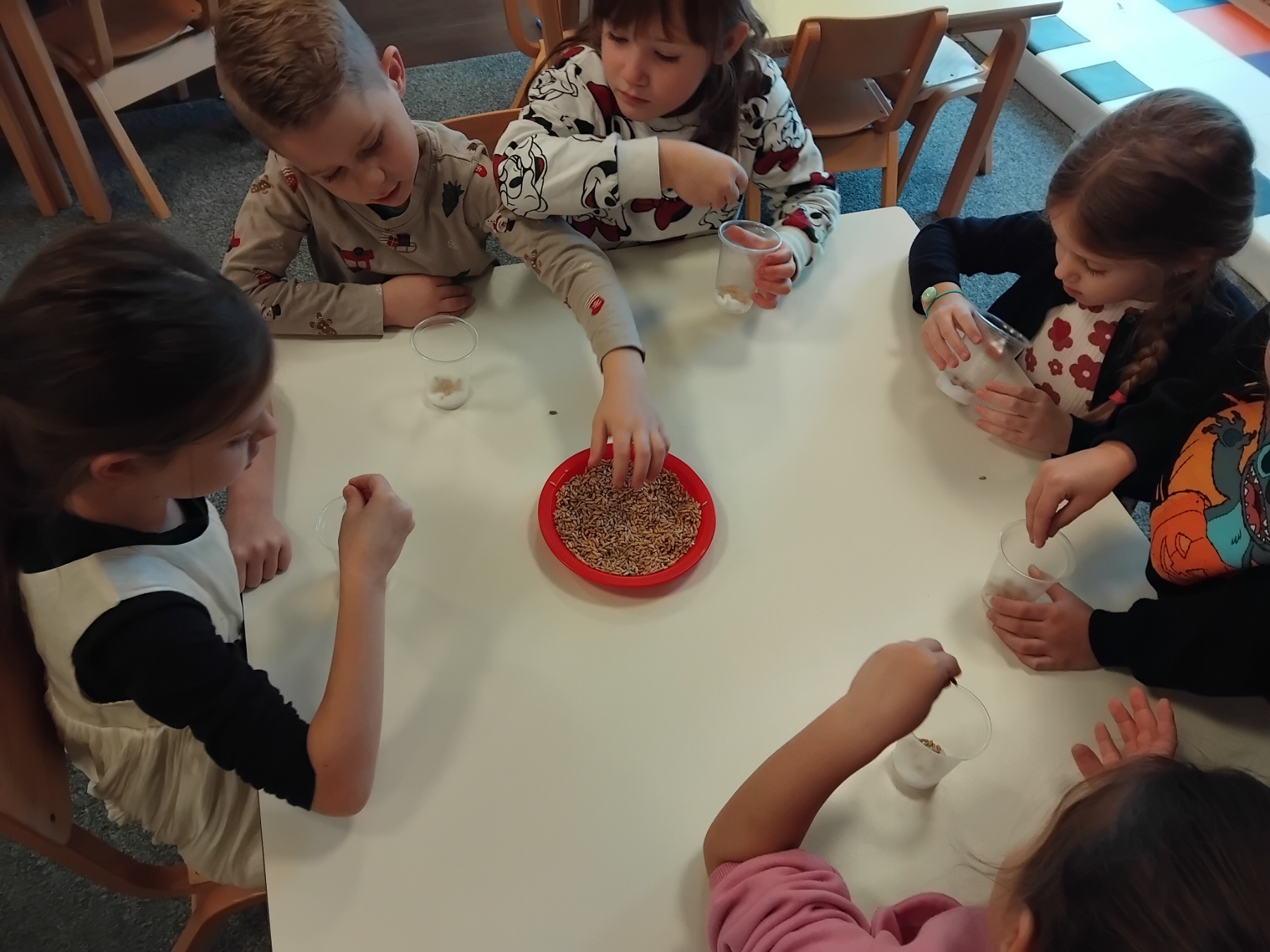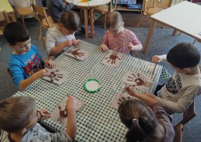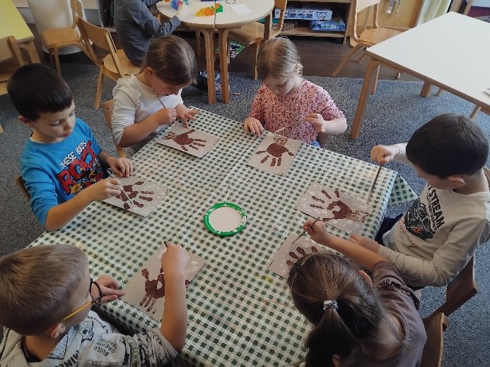 Za prvi dan jeseni prikupljali smo jesenke plodove kojima smo proučavali oblike, teksturu, mirise i okuse, a neki plodovi su nam poslužili za dekoraciju prostora u našem vrtiću. Usvojili smo prigodne pjesmice, stihove i prigodni igrokaz koji su nam približili jesen koja nam je stigla. Pročitali smo i prigodne priče te svoje dojmove likovno izrazili crtanjem i slikanjem.
