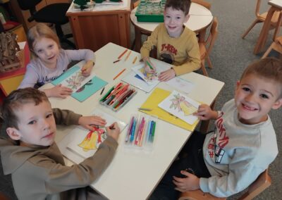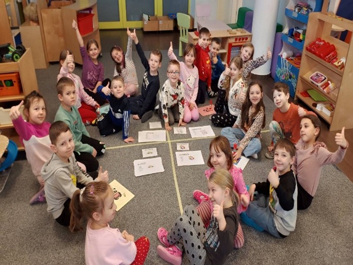 Svakodnevno smo provodili program predškole koji je djeci zanimljiv i izazovan. Uz to smo igrali razne igre predškole u kojima su djeca usvajala pojmove suprotnosti i rime i pri tome se zabavljali u kombiniranju raznih riječi.
