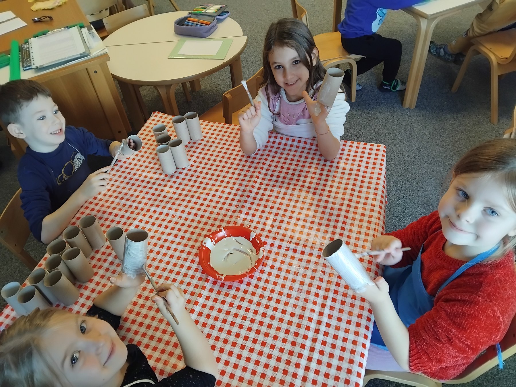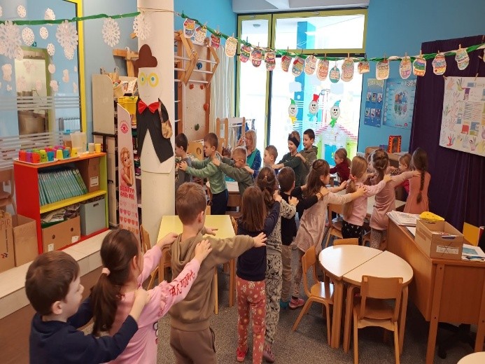 Provodili smo projekt „Svakog tjedna priča jedna“ čitajući slikovnice božićnih tema i projekt „Igre u pokretu“ svakodnevnim tjelesnim aktivnostima u dvorani kao što su poligoni s preprekama, dječji aerobik i razne igre u pokretu.
