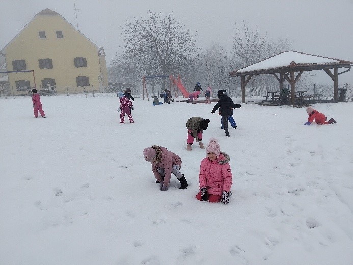 Prve snježne pahulje ove godine silno su nas razveselile te smo nestrpljivo čekali odlazak na dječje igralište gdje su djeca radila grude, bacala snijeg i napravila snjegovića i pri tome se jako dobro zabavila.