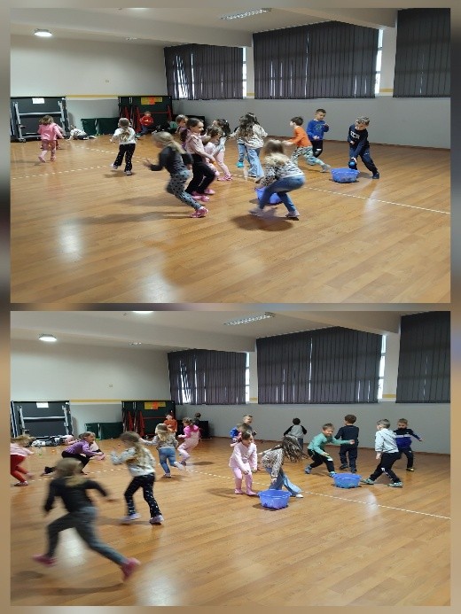 Nastavili smo s našim projektima na nivou skupine „Svakog tjedna priča jedna“ u kojem svakog petka čitamo priču iz slikovnice koju su donijela djeca, te crtamo svoje dojmove iz pročitane priče. Za vrijeme jutarnje tjelovježbe, boraveći u dvorani, svakodnevno provodimo projekt „Igre u pokretu“ kojima utječemo na pokretljivost cijelog organizma, razvoj motorike i koordinacije pokreta.