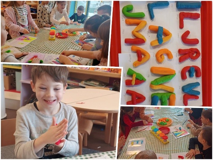 Ovaj mjesec upoznali smo sva slova abecede, a kako bi nam ih bilo zanimljivije i veselije učiti u tome nam je pomogla teta Irina sa svojom glazbenom radionicom u kojoj smo učili pjevati pjesmicu Abeceda dok nas je ona pratila na svom sintisajzeru. Svako je dijete i pokušalo odsvirati pokoji ton ove vesele i brze pjesmice.