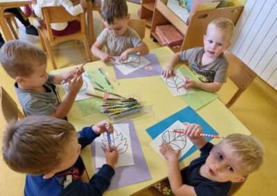 Polako smo se i pripremali za dolazak jeseni – razgovarali o promjenama u prirodi, izrađivali jesenske motive i uvodili prve jesenske pjesme i igre.