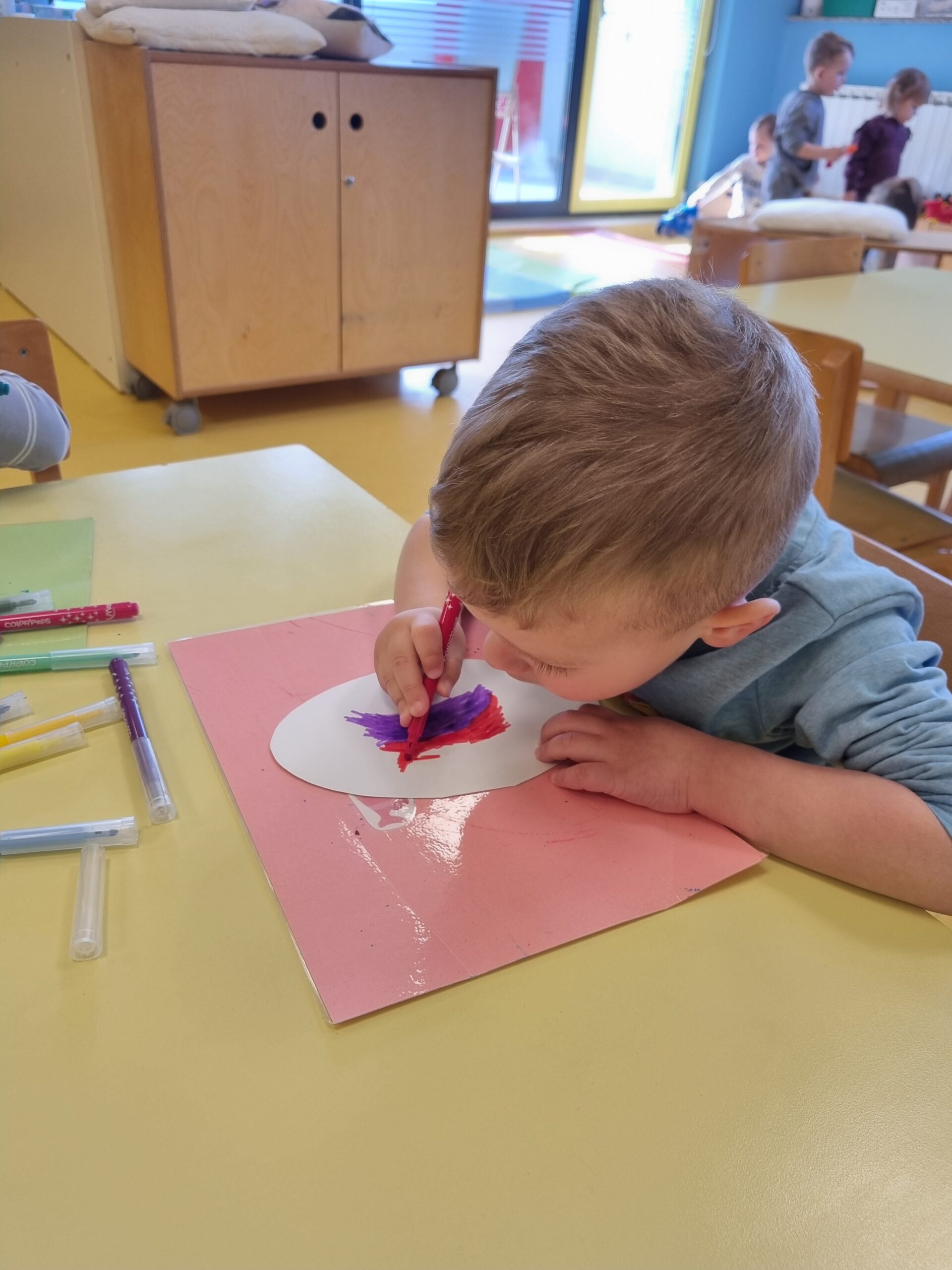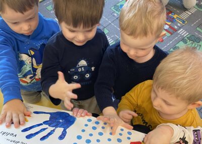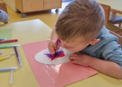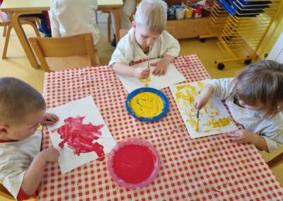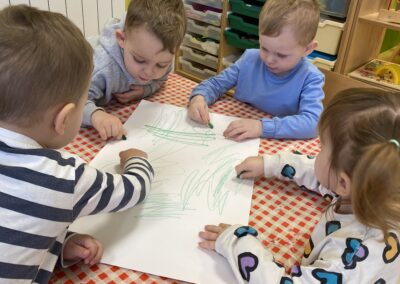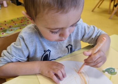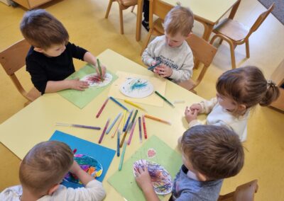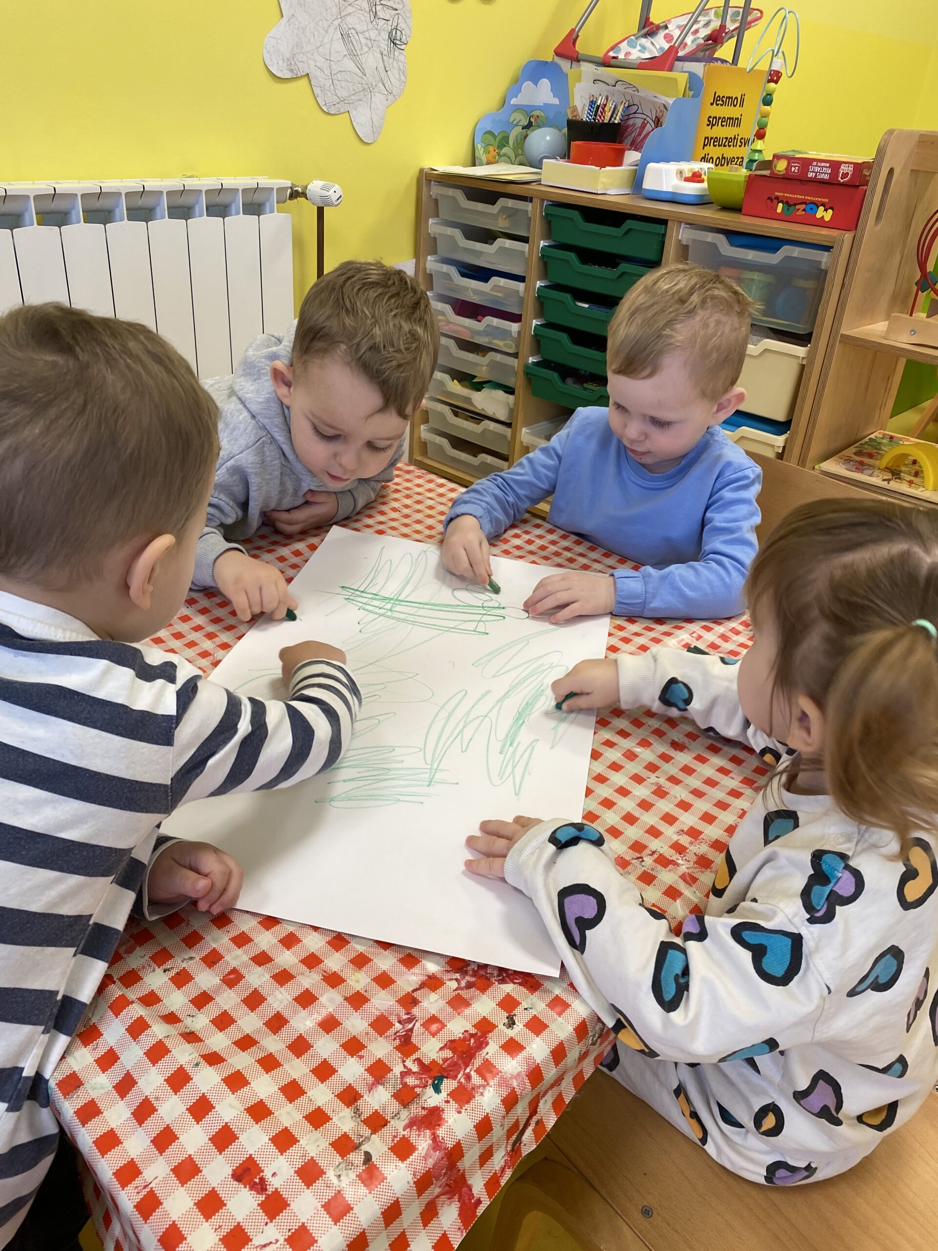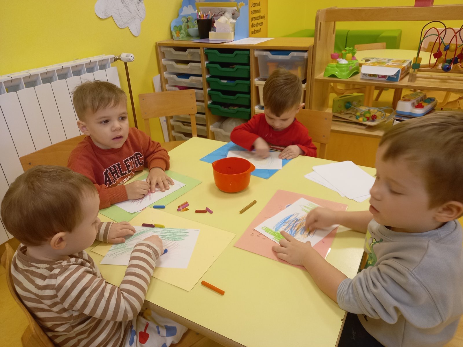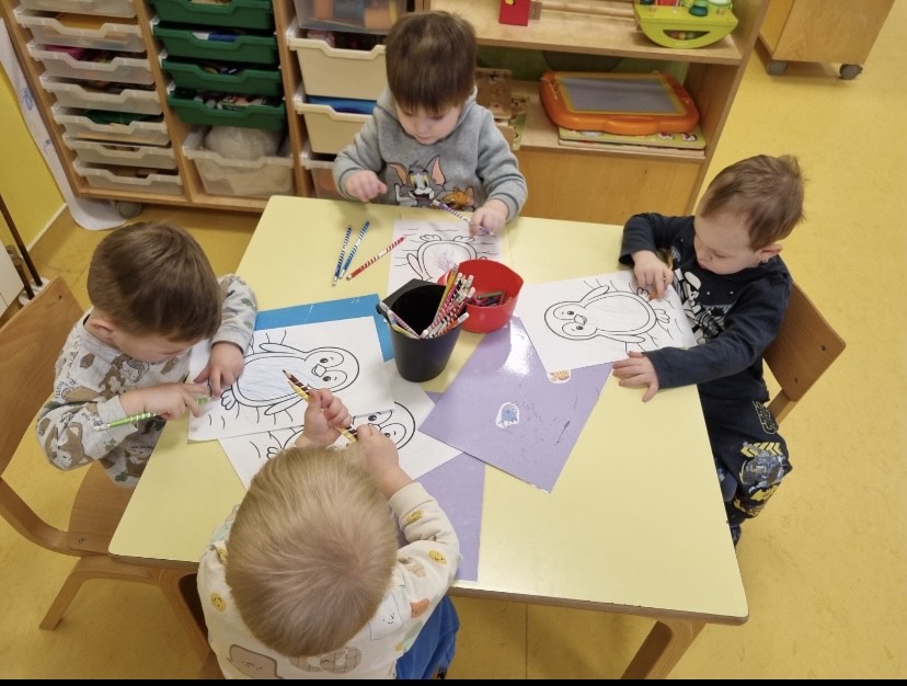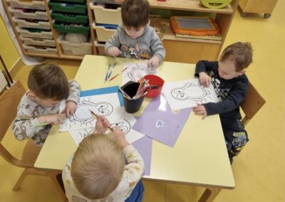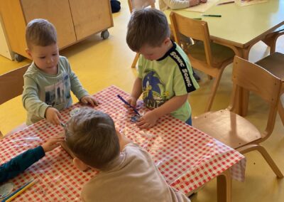 Posebno mjesto u našim aktivnostima zauzele su likovne aktivnosti, tijekom kojih su se djeca izražavala koristeći tempere i bojice. Kroz kreativni rad razvijala su maštu, finu motoriku i osjećaj za boje, a njihovi radovi dodatno su uljepšali prostor skupine.