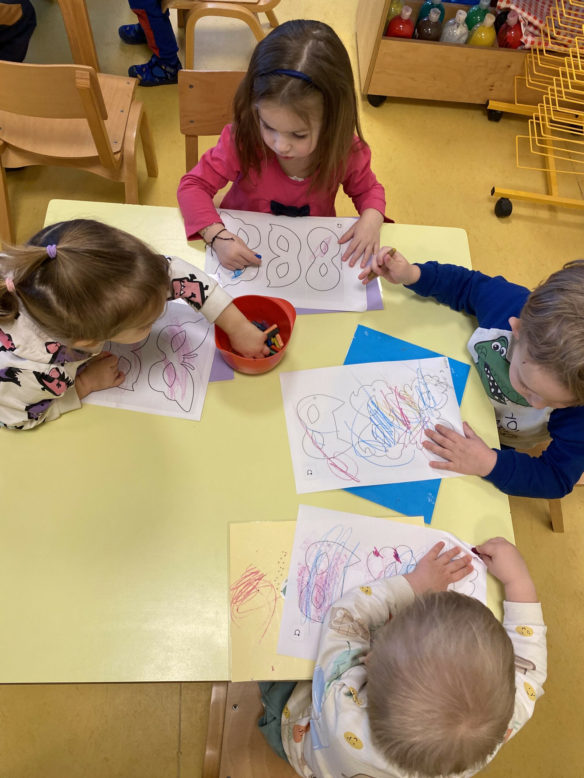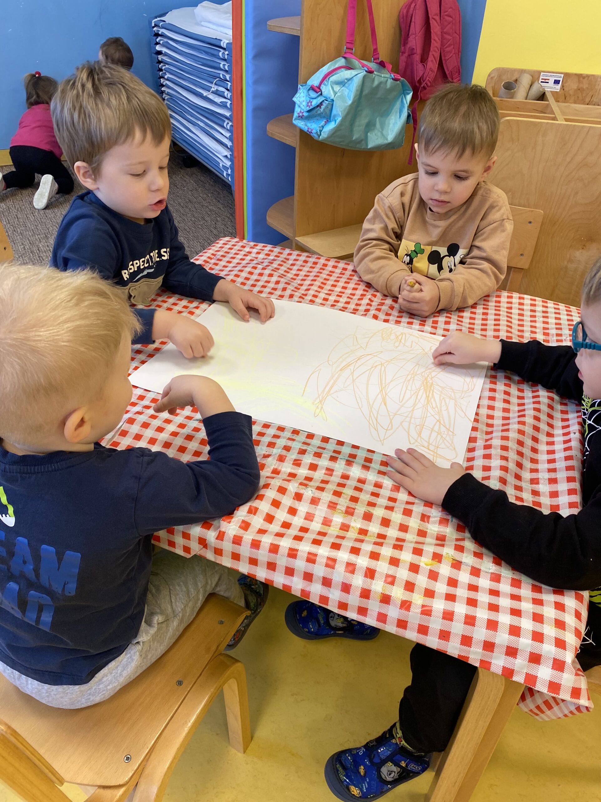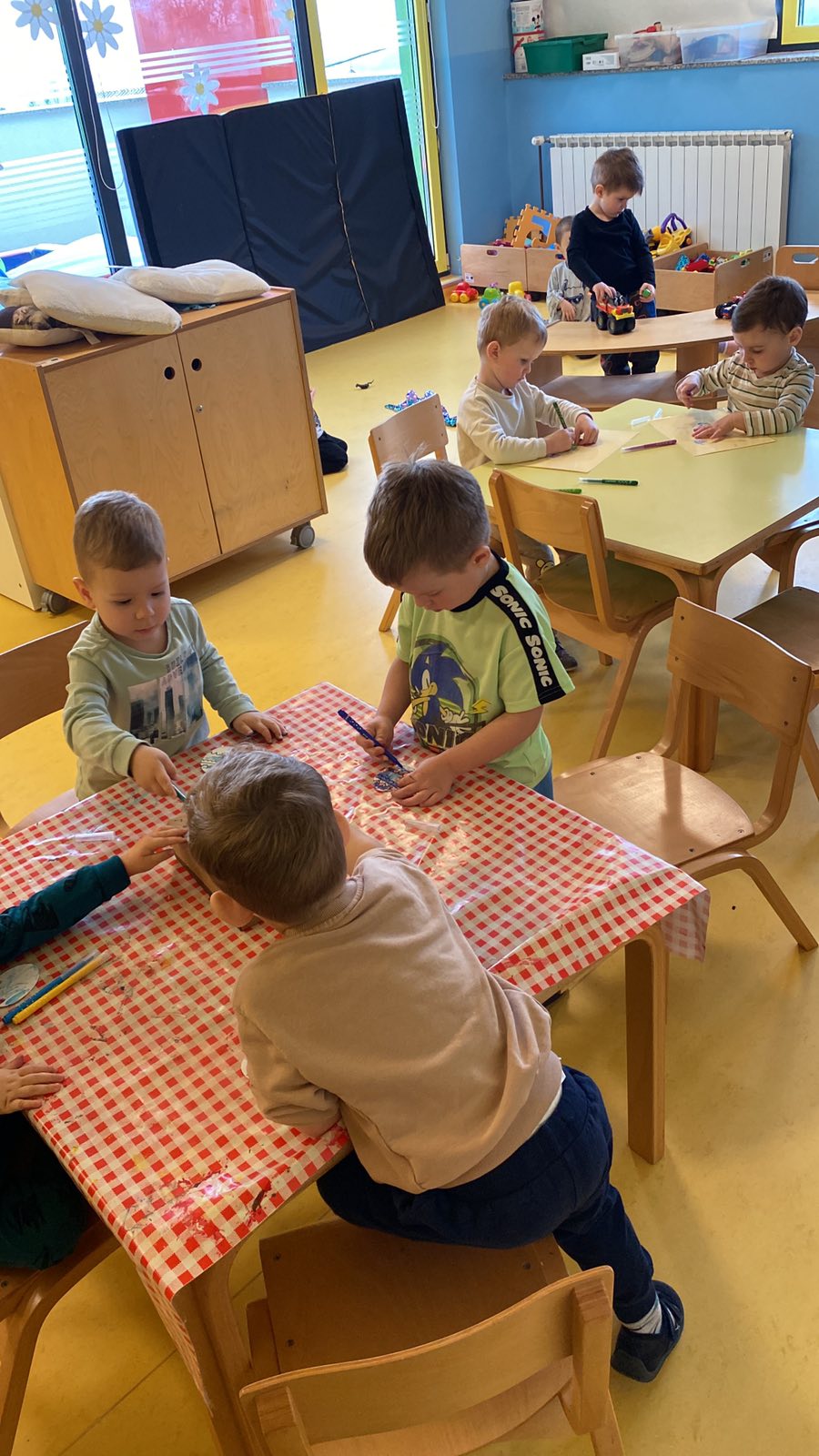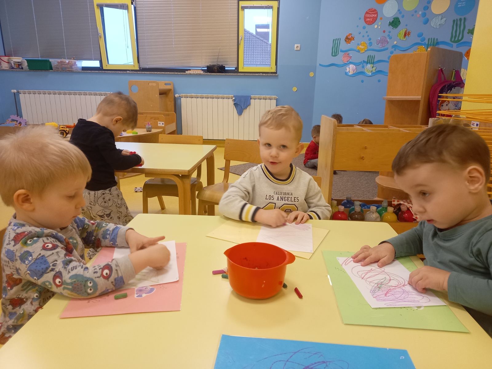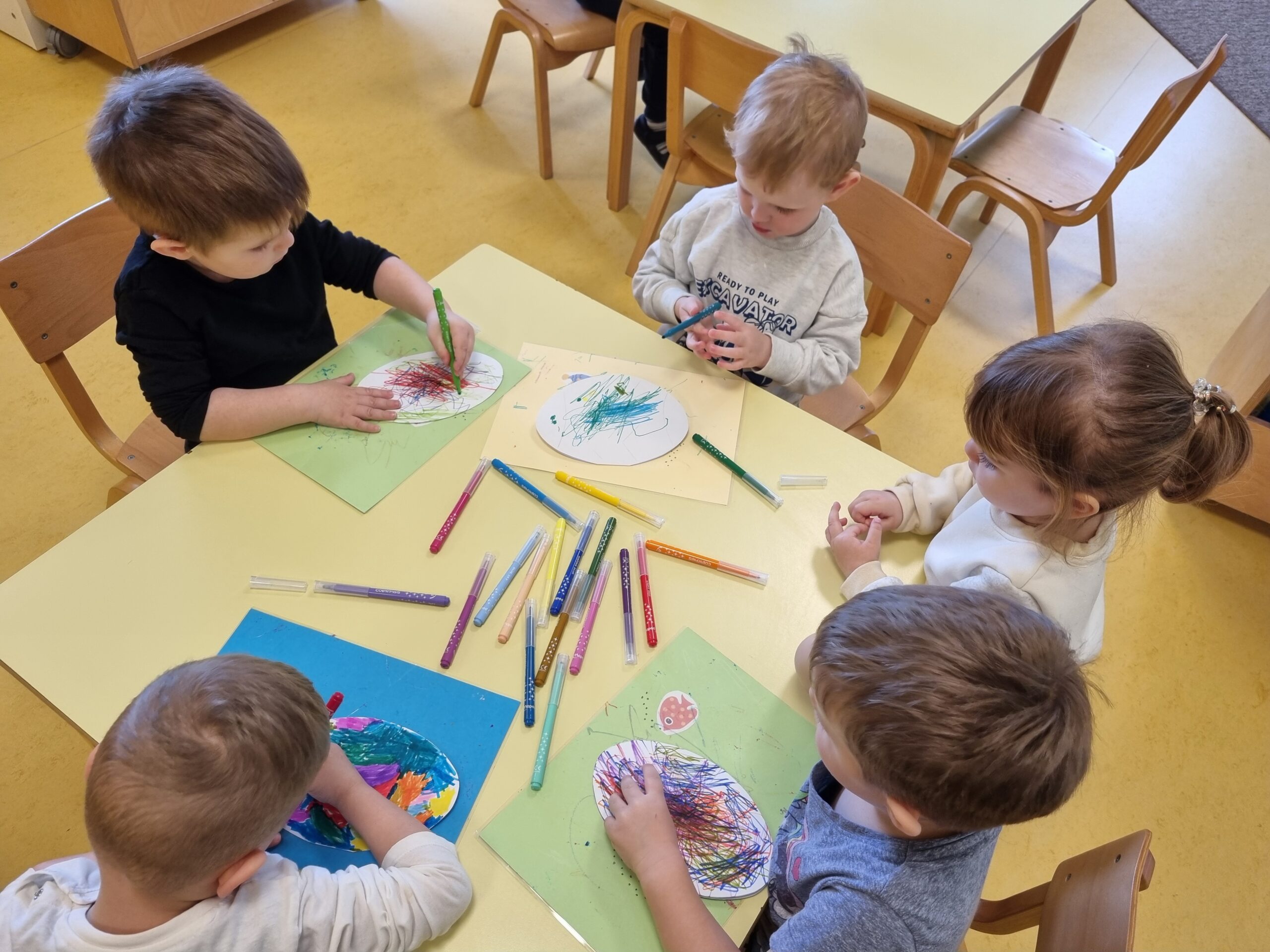 Posebno mjesto u našim aktivnostima zauzele su likovne aktivnosti, tijekom kojih su se djeca izražavala koristeći tempere i bojice. Kroz kreativni rad razvijala su maštu, finu motoriku i osjećaj za boje, a njihovi radovi dodatno su uljepšali prostor skupine.
