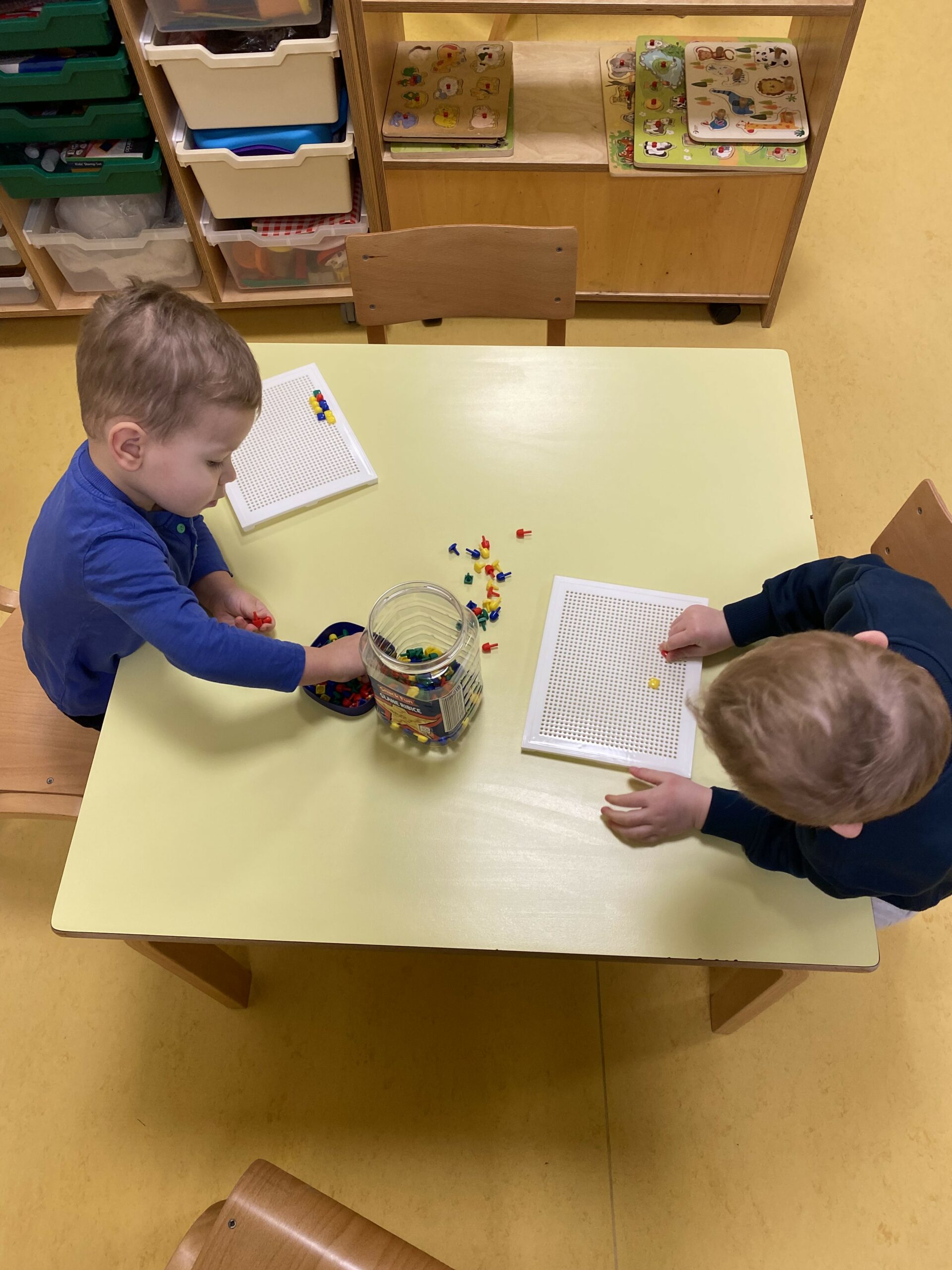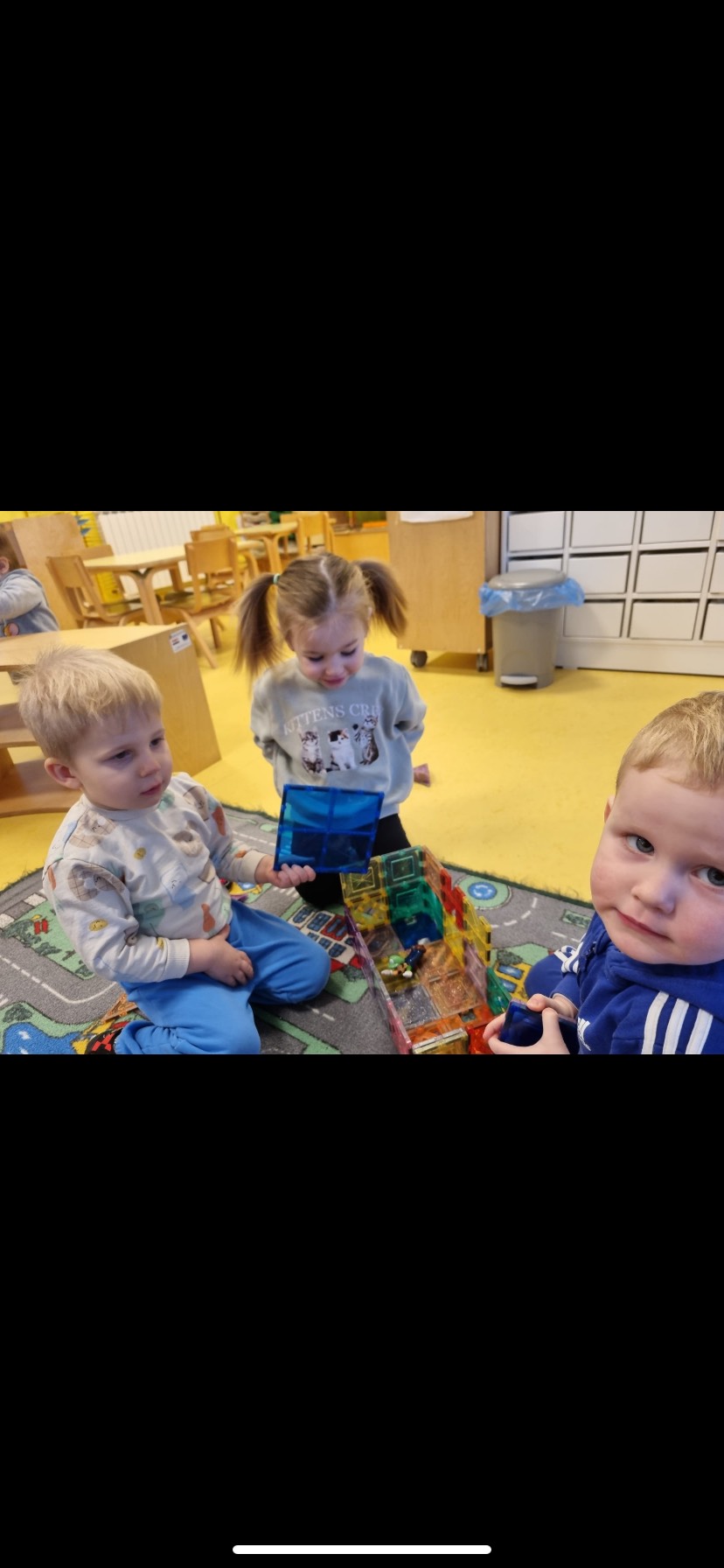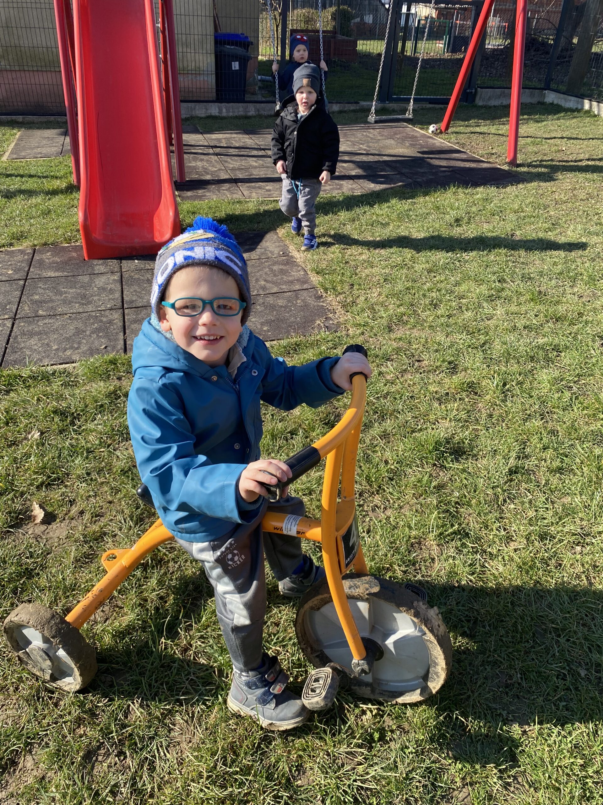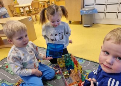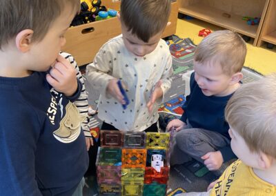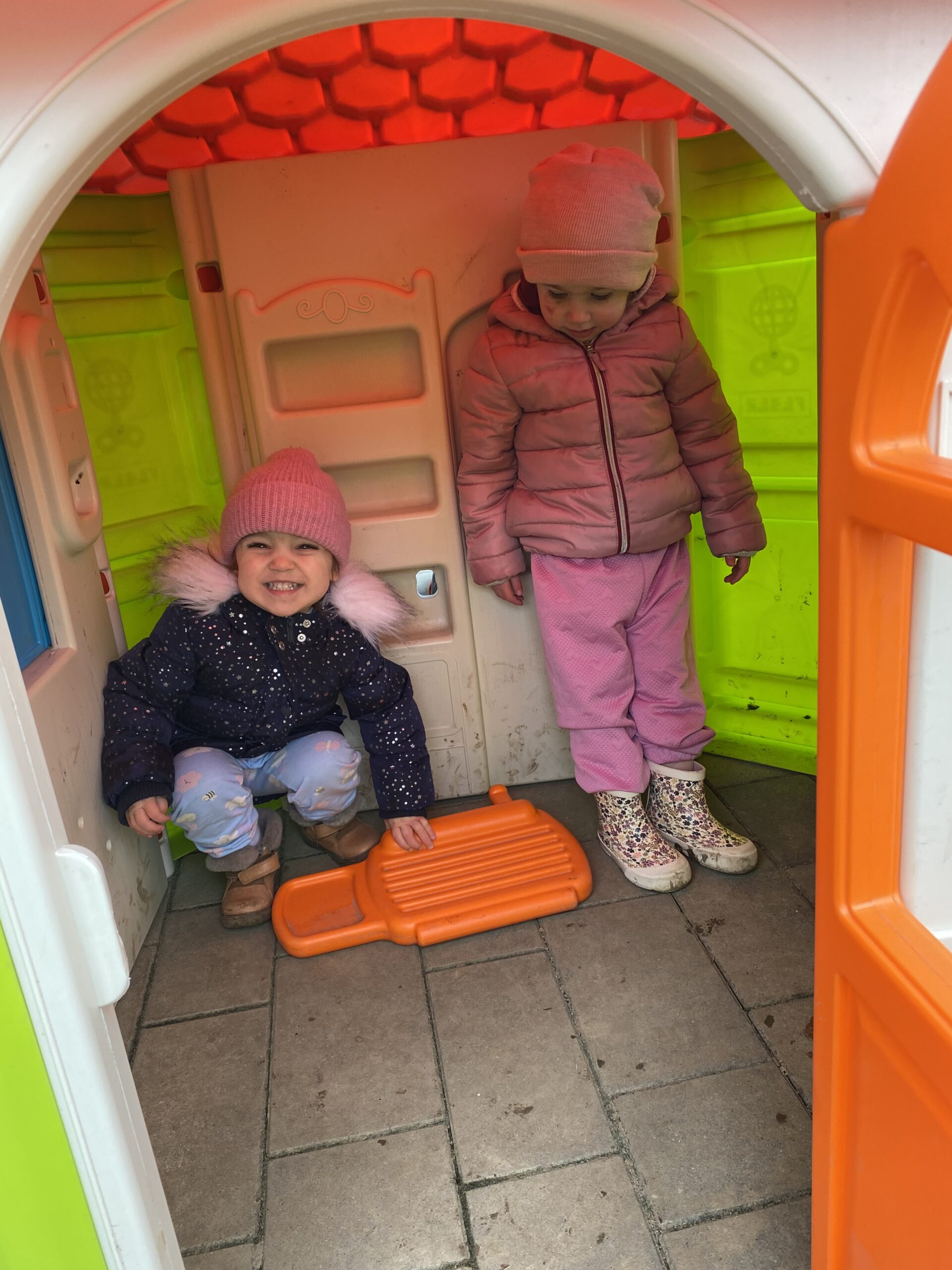 Puno istražujemo, pokušavamo se dogovarati, dijeliti igračke, igrati se zajedno. Jjedna od omiljenih igara nam je „Igra kolo”, koju se često igramo dok idemo u dvoranu, ili u susjedinoj garaži dok se vani šećemo ako ne možemo na naše omiljeno igralište.