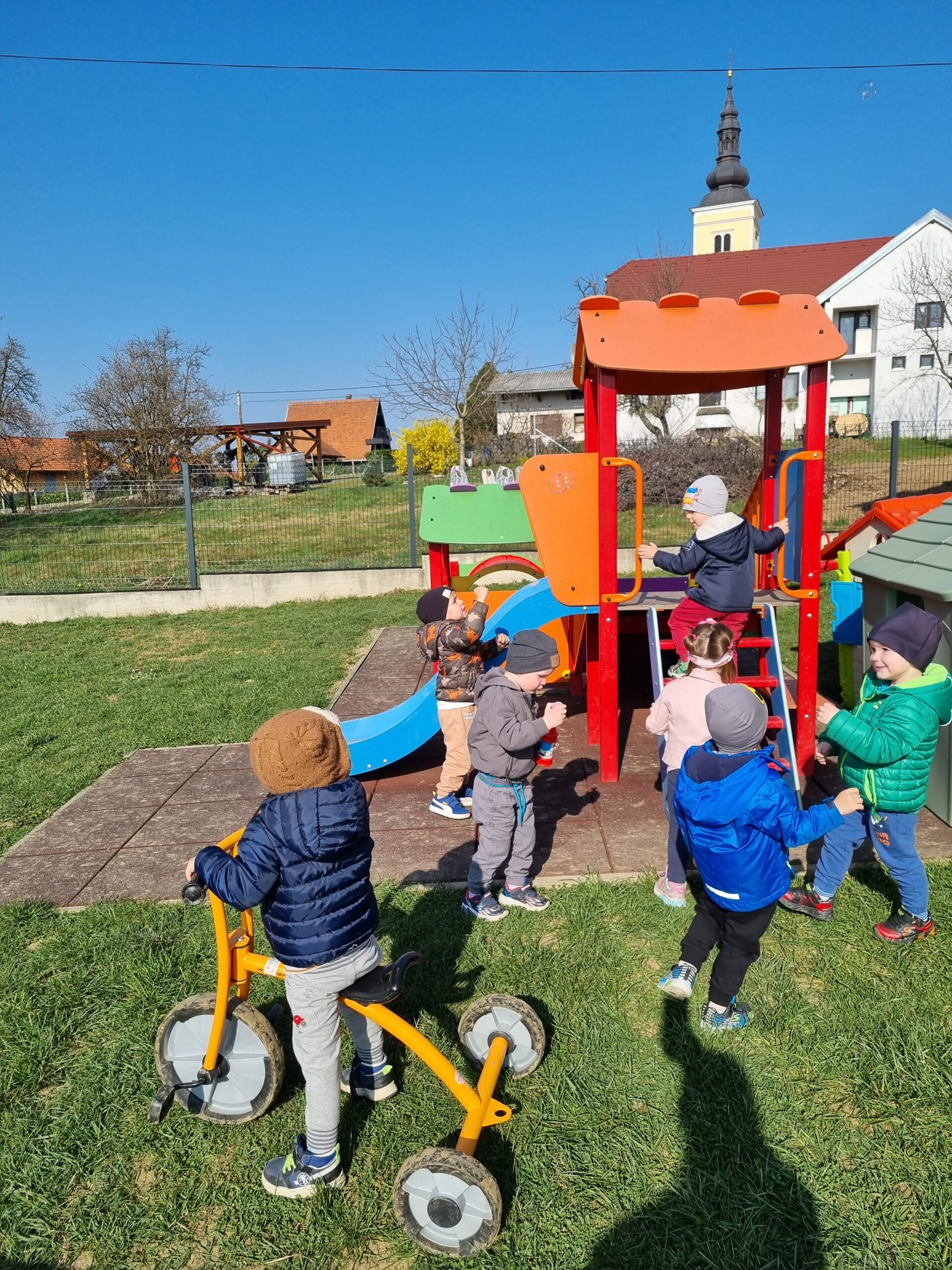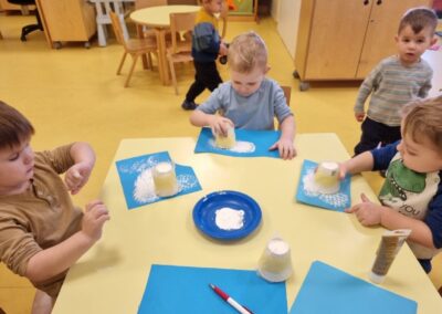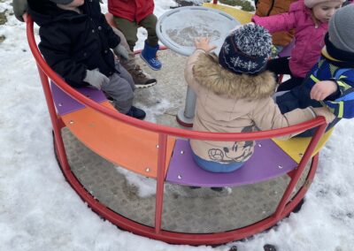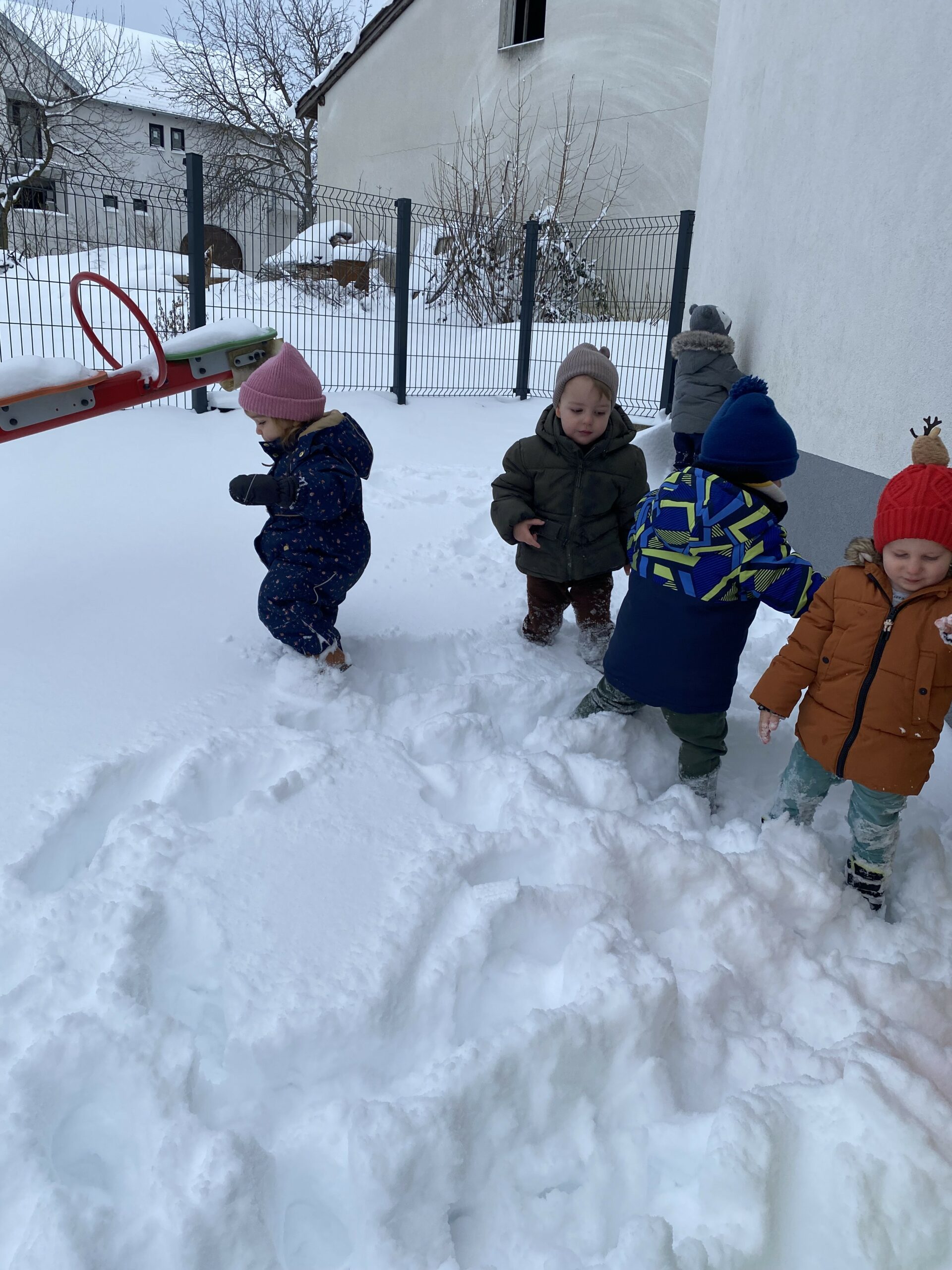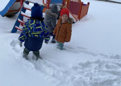 Stigao nam je i prvi ovogodišnji snijeg, a s njim i mnogo veselja. Iskoristili smo ga za igru na otvorenom i istraživanje zimskih radosti. Kada nam vrijeme dopusti, odlazimo i u naše redovite šetnje na svježem zraku, što djecu posebno opušta i veseli.