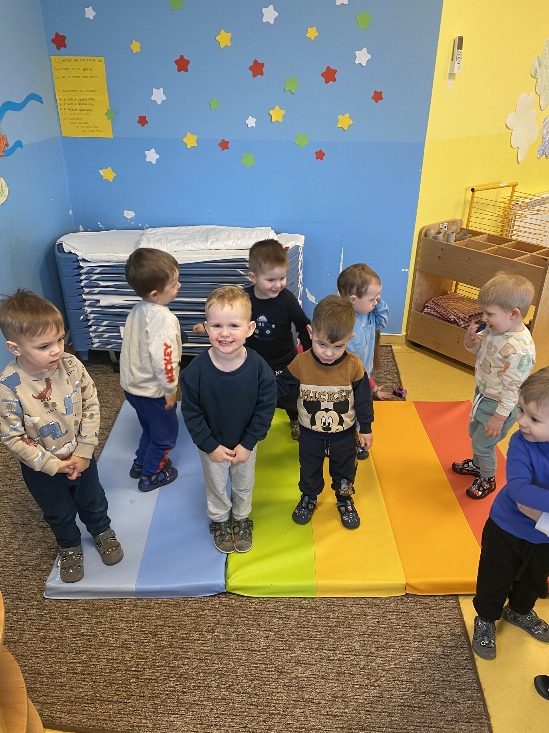 U danima kada je boravak vani otežan, družimo se u dvorani uz tjelovježbu i razne motoričke aktivnosti koje potiču koordinaciju i razvoj.