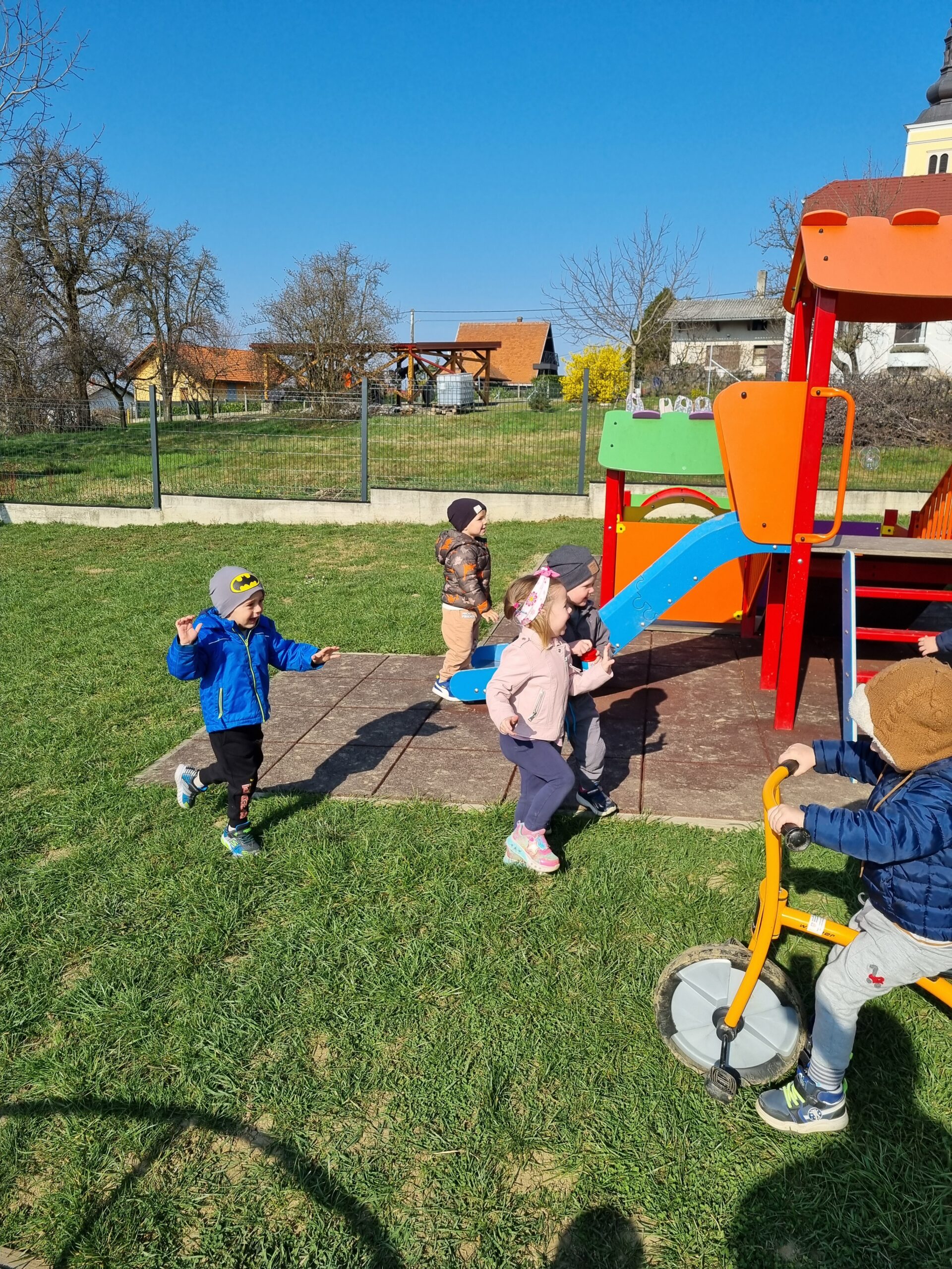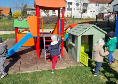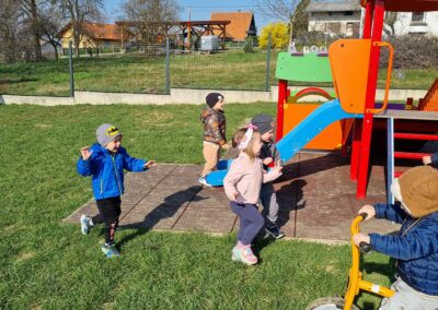 Dolaskom toplijih dana sve smo više vremena provodili na otvorenom. Proljetno sunce izmamilo je osmijehe na dječja lica, a boravak na svježem zraku iskoristili smo za istraživačke aktivnosti, kretanje i slobodnu igru. Djeca su promatrala promjene u prirodi, uočavala prve znakove proljeća te kroz igru razvijala motoričke vještine i suradnju.