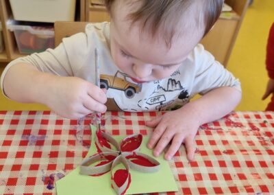 U skupini Ribice započeli smo s izradom božićnih ukrasa kojima ćemo uljepšati hodnik i bor kod općine. Djeca uživaju u stvaranju blagdanske čarolije, a atmosferu dodatno upotpunjuju prve božićne pjesme koje rado pjevamo svakoga dana.