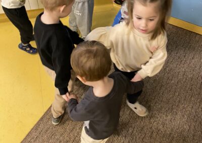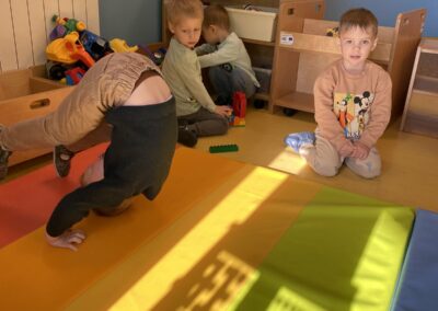 U danima kada boravak na otvorenom nije bio moguć, organizirali smo igru i tjelovježbu u dvorani. Kroz razne igre kretanja, poligone i vježbe, djeca su imala priliku zadovoljiti potrebu za kretanjem, jačati koordinaciju, ravnotežu i timski duh.