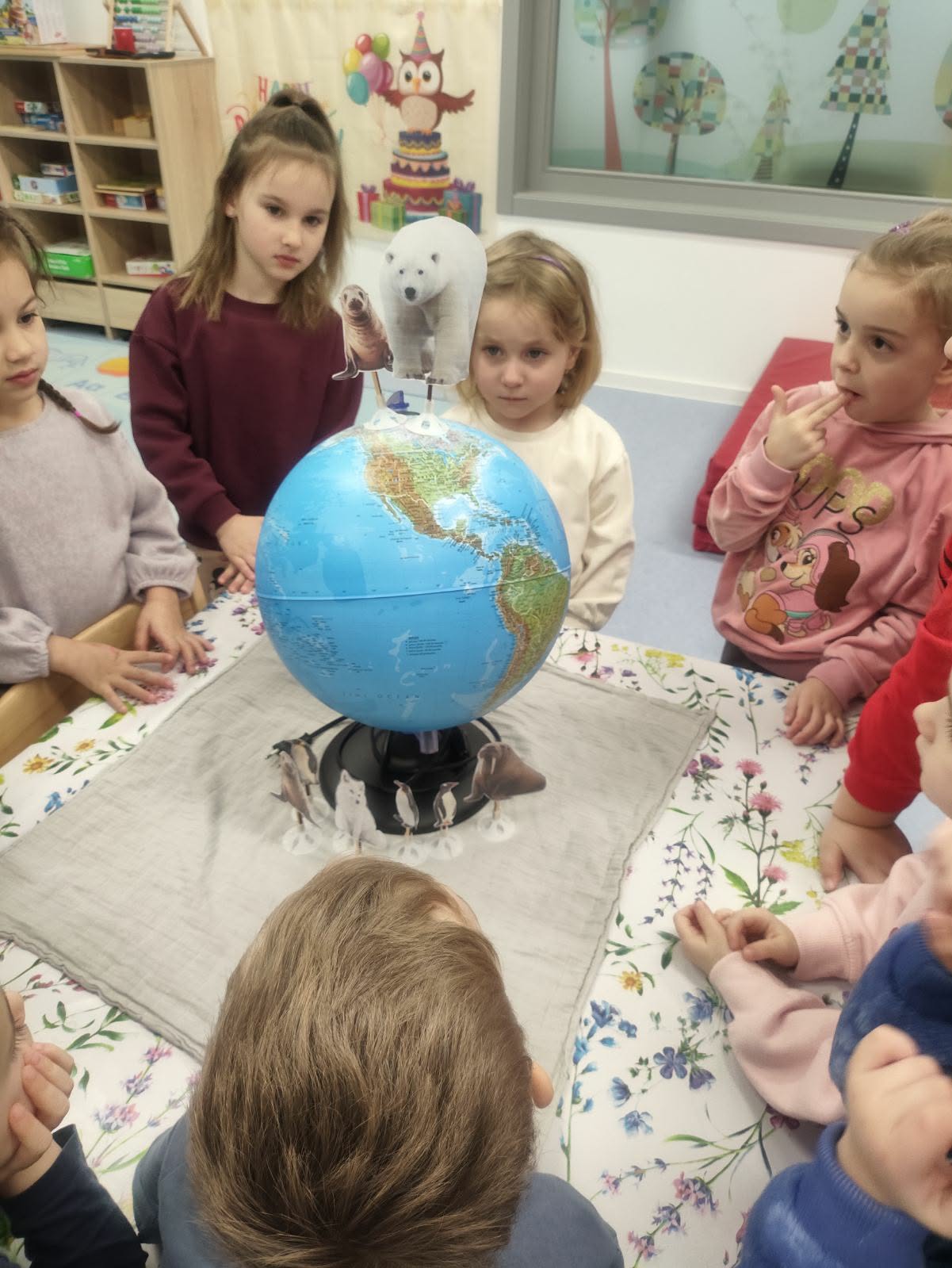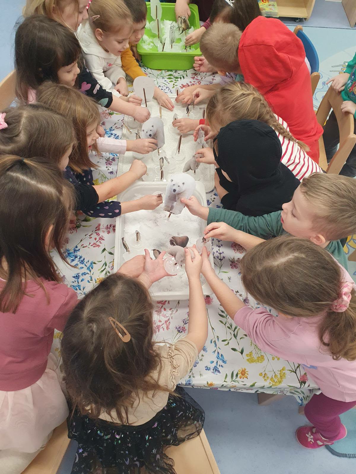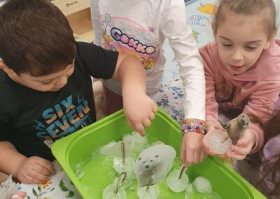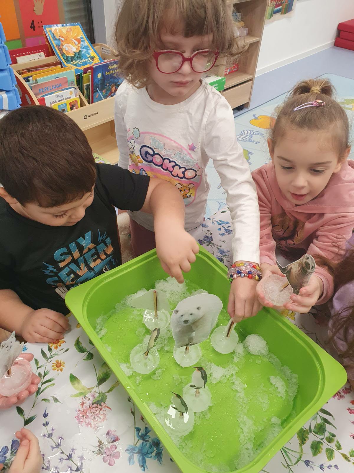 Vezano na spomenutu temu hladnoće, djeca su imala prilike vidjeti na globusu svijeta gdje se nalazi Južni, a gdje Sjeverni pol. Također su naučili da pingvini, tuljani, plavi kit i orka žive na Južnom polu, dok na Sjevernom polu žive polarni medvjedi, morževi i artičke lisice. Sve spomenute životinje imali su priložene na fotografijama, koje su i kasnije koristili tijekom igre.