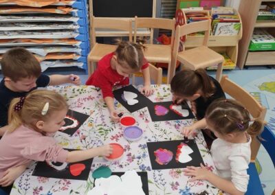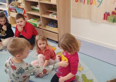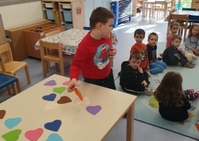 Na početku mjeseca pripremali smo se za dolazak Svetog Nikole izrađujući čizmice te razgovarajući o našim željama. Kroz prigodne priče i slikovnice djeci smo približili vrijednosti skromnosti i zahvalnosti za sve što imamo. Sveti Nikola u tajnosti je posjetio naš vrtić te je na ormarićima u garderobi ostavio prigodne poklone, što je djeci donijelo veliko veselje.
