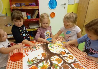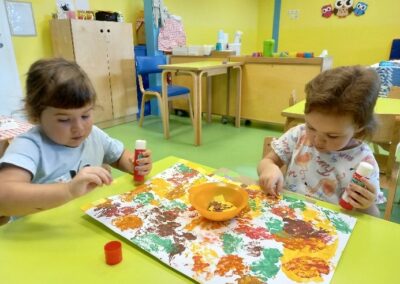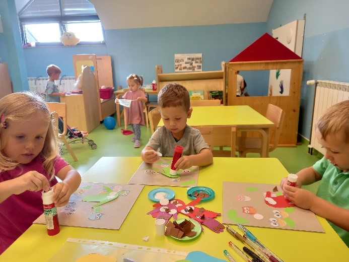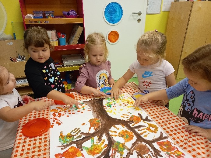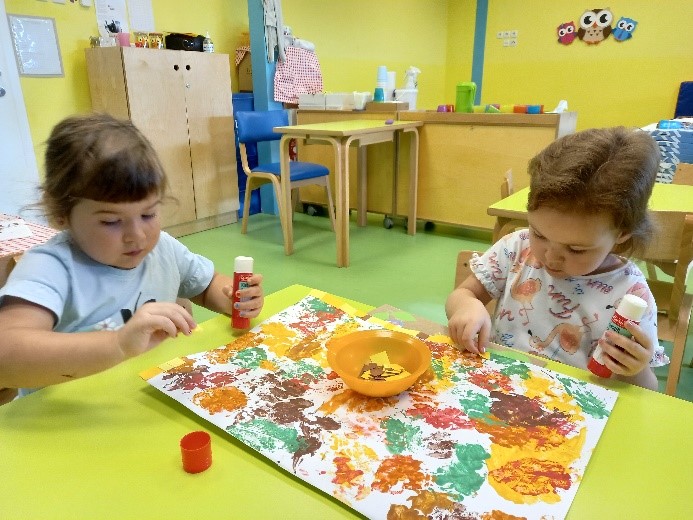 Aktivnosti su bile vezane uz dolazak jeseni. Berbe grožđa, obilje jesenskog voća i raznih plodova te promjene u prirodi – sve to smo promatrali vani te u sobi, isprobali razne okuse koje smo uspoređivali, a na kraju i raznim likovno kreativnim tehnikama izrazili svoj doživljaj. Naučili smo kraće recitacije i pjesmice vezane uz jesensku tematiku.
