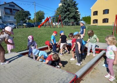 Krajem mjeseca održana je „Jesenska svečanost“ s roditeljima. Djeca su svojim prvim solo nastupom pozdravila sve prisutne i za prvi put svi smo bili jako ponosni. Slijedile su jesenske štafetne igre u kojima smo se dobro nasmijali. Na kraju smo se počastili jesenskim plodovima i slobodno poigrali na dječjem igralištu. Ostale su lijepe uspomene na zajedničko druženje.