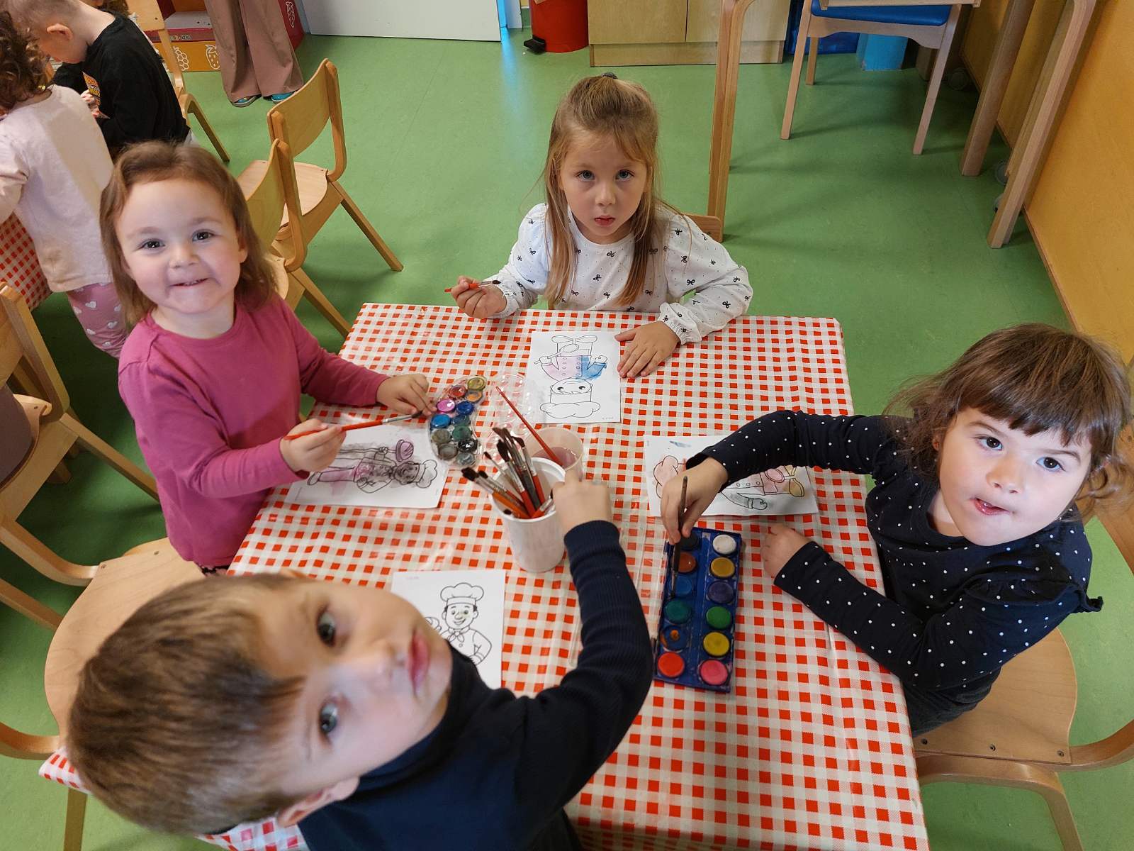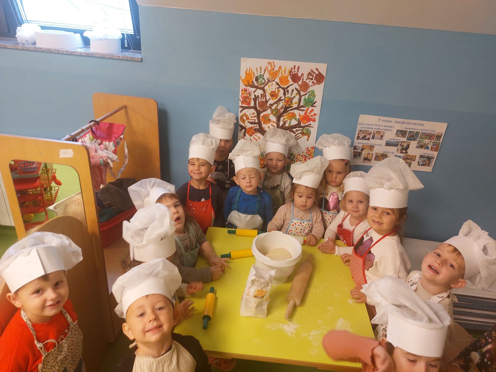 U trećem smo tjednu obilježili Dane kruha i zahvalnosti za plodove zemlje. Od dignutog smo tijesta razvaljali i ispekli klipiće, svatko svoj „za doma“, a jednu smo „turu“ pojeli u vrtiću. Baš su bili ukusni! Naučili smo pjevati pjesmicu „Pekarčić“, bojali smo i crtali peciva i kruh.