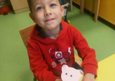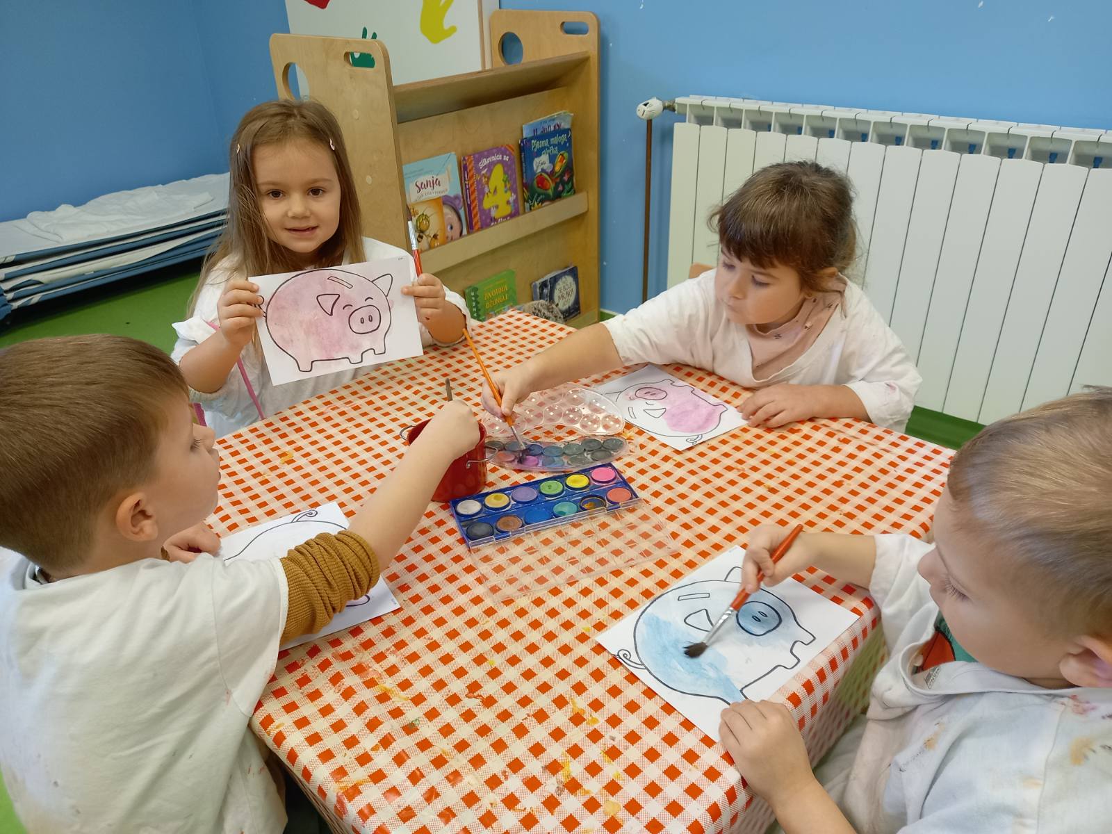 U zadnjem tjednu listopada, povodom Svjetskog dana štednje, razgovarali smo o šparavcima, novčićima, štednji te izradili svoje prave kasice-prasice. Bojali smo iste i na papiru te u njih lijepili sitne papirnate novčiće.