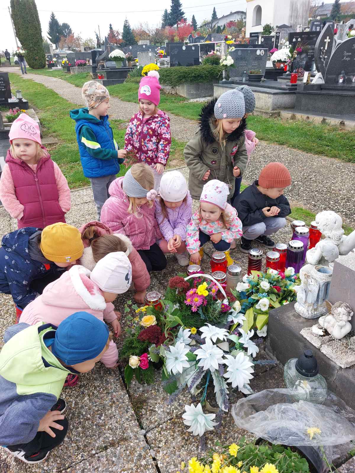 U petak 31. listopada, sami smo izradili 2 cvjetna aranžmana te ih odnijeli na mjesno groblje i zapalili svijeću za sve umrle.