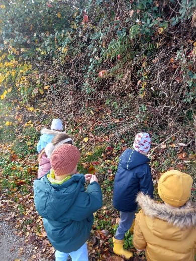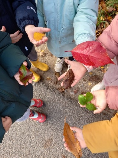 Kako su dani bili hladniji i kišovitiji, više smo boravili vani šetajući te promatrali promjene u prirodi. Gledajući raznobojno lišće češće smo imenovali boje i nijanse lišća, uspoređivali s bojama na sebi, tj. odjeći i obući.