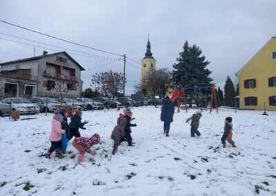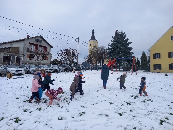 Prvi snijeg nas je lijepo iznenadio pa smo odmah iskoristili vrijeme i uživali u snježnim radostima. Grudali smo se, valjali po snijegu i napravili malog snješka. Nadamo se zimi punoj snijega te takvog zimskog ugođaja.