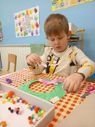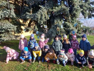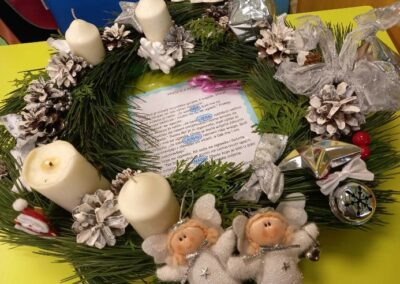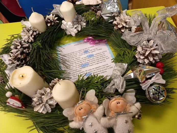 Zadnji tjedan u studenome počeli smo s aktivnostima za Advent. Čitali amo priču o Adventu te izradili zajednički adventski vijenac. Izradili smo razne ukrase kojima smo uljepšali naš prostor. Prošetali smo do naše općine te ukrasili bor ukrasima koje smo izradili.