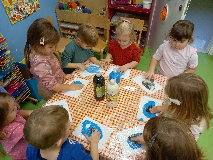 Uz igru plastelinom miješali smo boje i otkrivali kako se dobije koja boja. Temperama smo istraživali kako dobiti razne nijanse nekih boja.