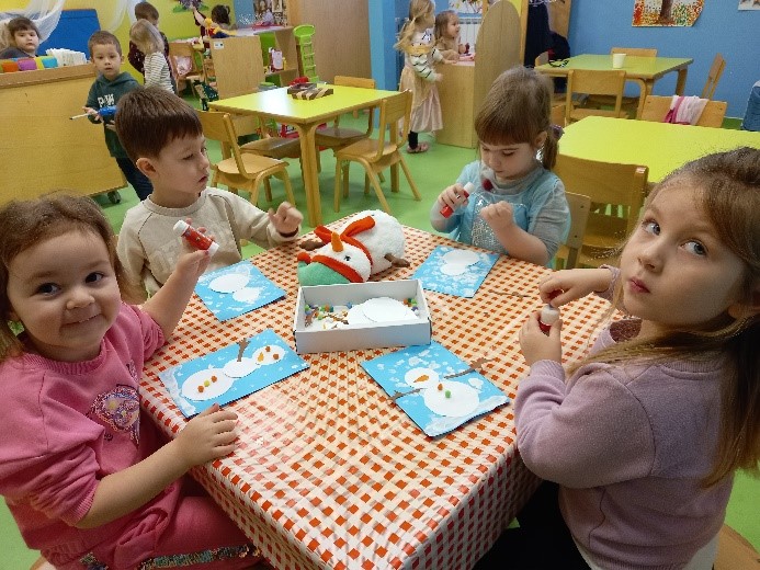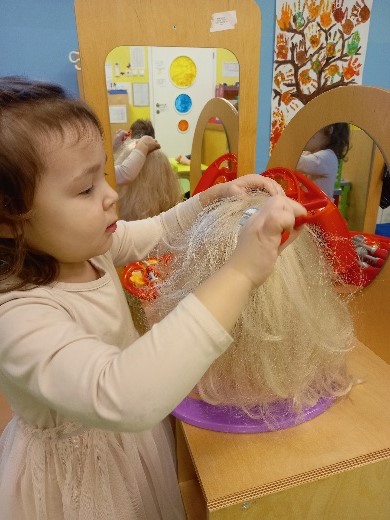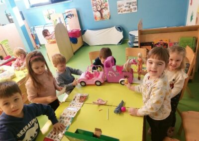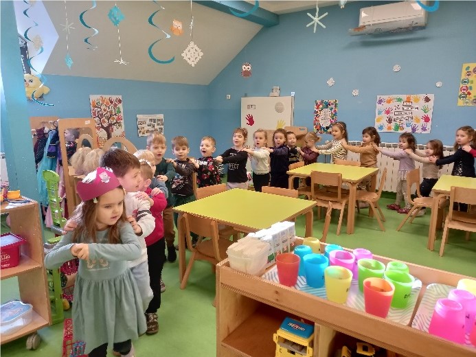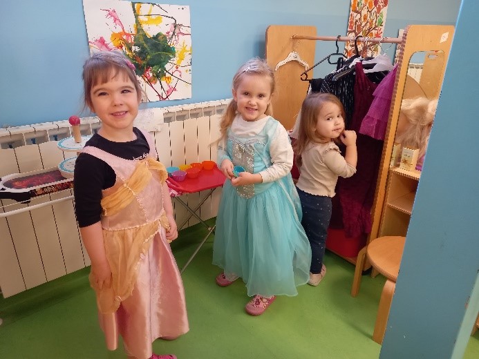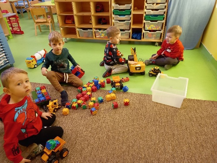Početkom siječnja još smo bili na produženom godišnjem odmoru. Nakon dužeg izostanka iz vrtića djeca su se brzo priviknula na dnevni ritam. Osobito su im bile zanimljive nove igračke koje smo dobili prošli mjesec od Djedice. U samoj igri vidljiva je suradnička igra te podjela uloga, a igra ima i svoj dulji tijek. Djeca više komuniciraju i nadograđuju igru pa do izražaja dolazi dječja mašta.