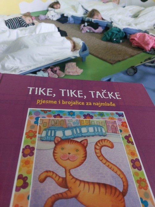 U našem dnevnom ritmu priče su dio naše svakodnevnice. Uključili smo se u kampanju „Cijela Hrvatska čita djeci – 15 za 15“. Sam projekt prilagodili smo dobi naše skupine, ali i svakom djetetu. Roditelji su također aktivno sudjelovali preko vikenda te su prema želji zajedno s djetetom kreativno izrazili dječji doživljaj dijela pročitane priče.
