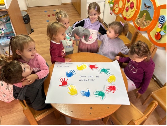 Mjesec smo započeli obilježavanjem Dječjeg tjedna, kroz razgovor o dječjim pravima i aktivnostima koje potiču zajedništvo i prijateljstvo. „Zvjezdice“ su uživale u igri, pjesmi i likovnim aktivnostima.